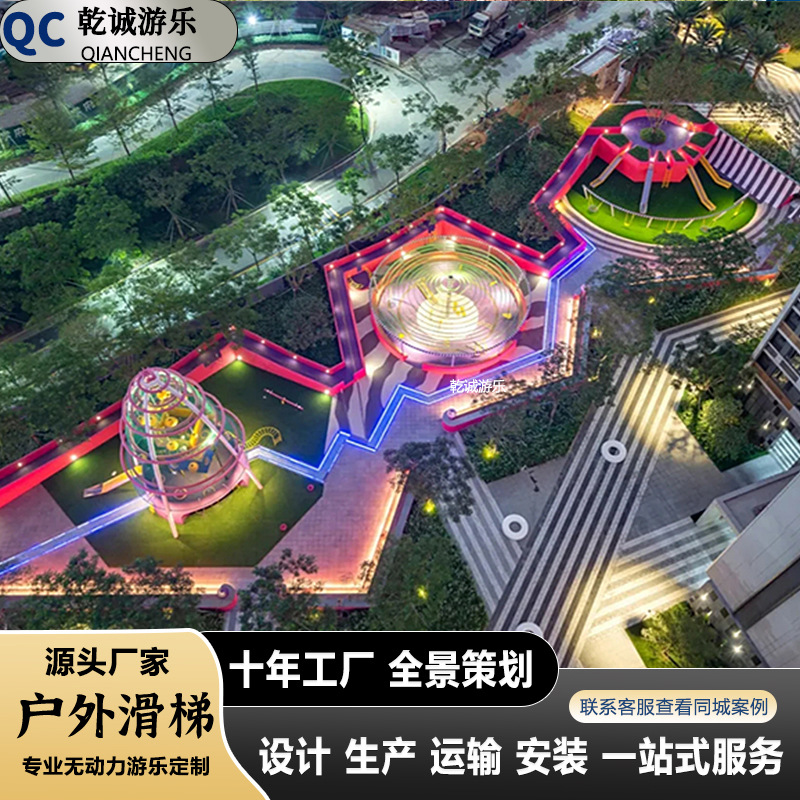 大型户外幼儿园不锈钢滑梯攀爬架爬网房地产公园整场策划游乐设备