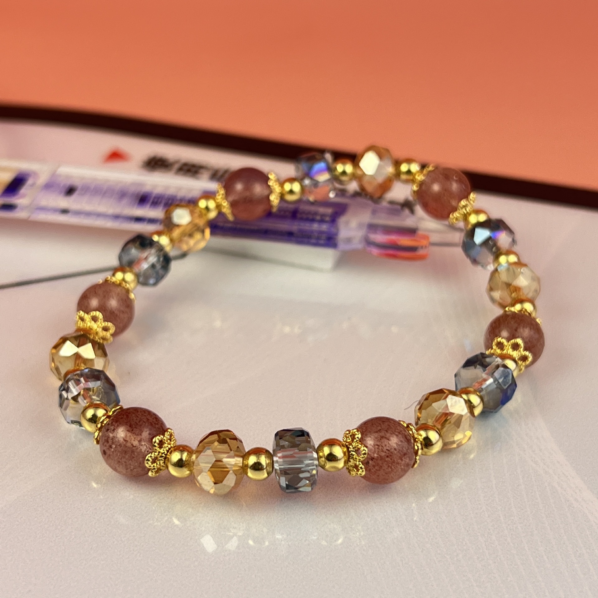 草莓晶天然粉水晶手链女式抖音直播爆款招桃花高级感串珠手串批发