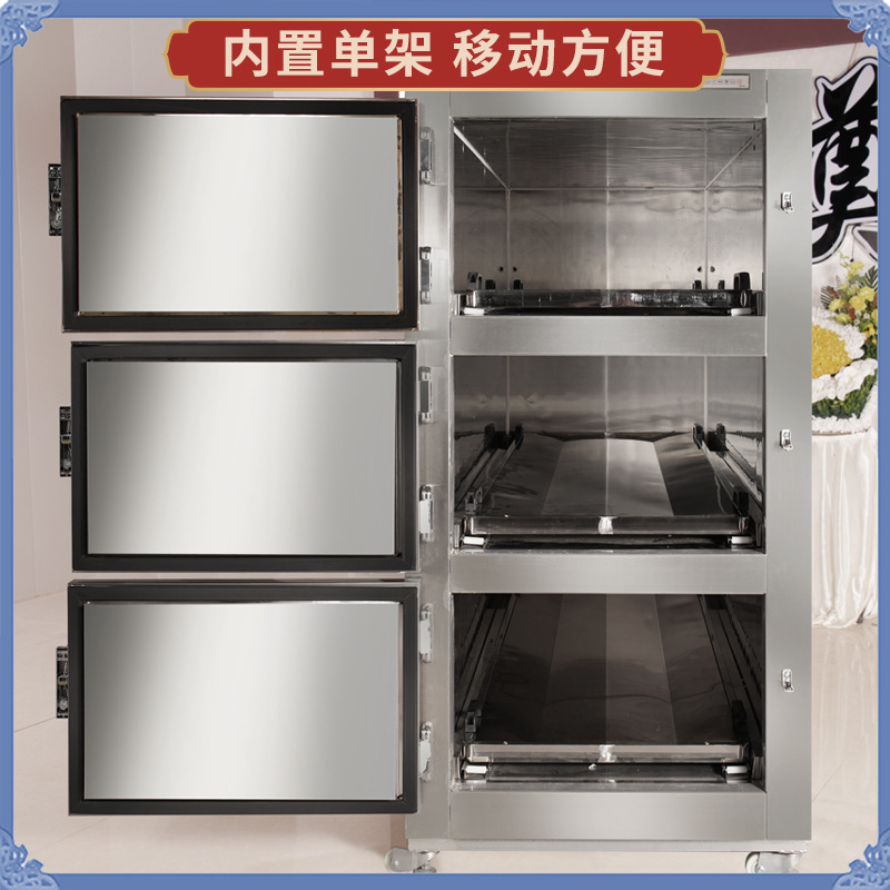 太平间冷冻柜三层停尸柜车载水晶棺医院殡仪馆遗体冷藏柜尸体冷冻