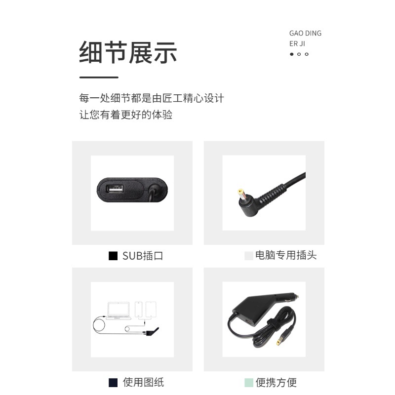 | 型号 | 车载H款-19V3.42A 5.5*2.5mm 【12V输入】 | 型号 | 车载H款-19V4.74A 5.5*2.5mm 【12V输入】 |