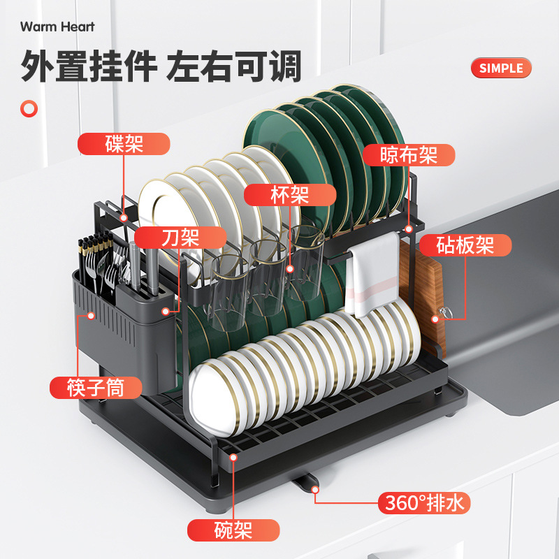 厨房家用碗碟置物架台面收纳架可拆卸沥水架双层多功能碗碟沥水架