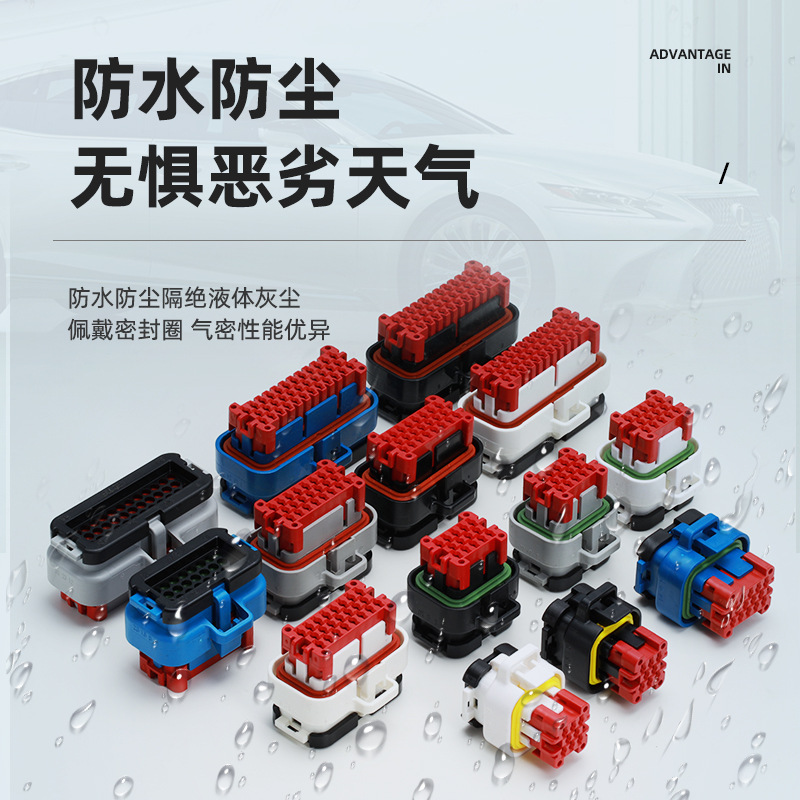 12芯汽车防水连接器线束插头1孔2P3芯4P6P8孔14p公母接插件全套