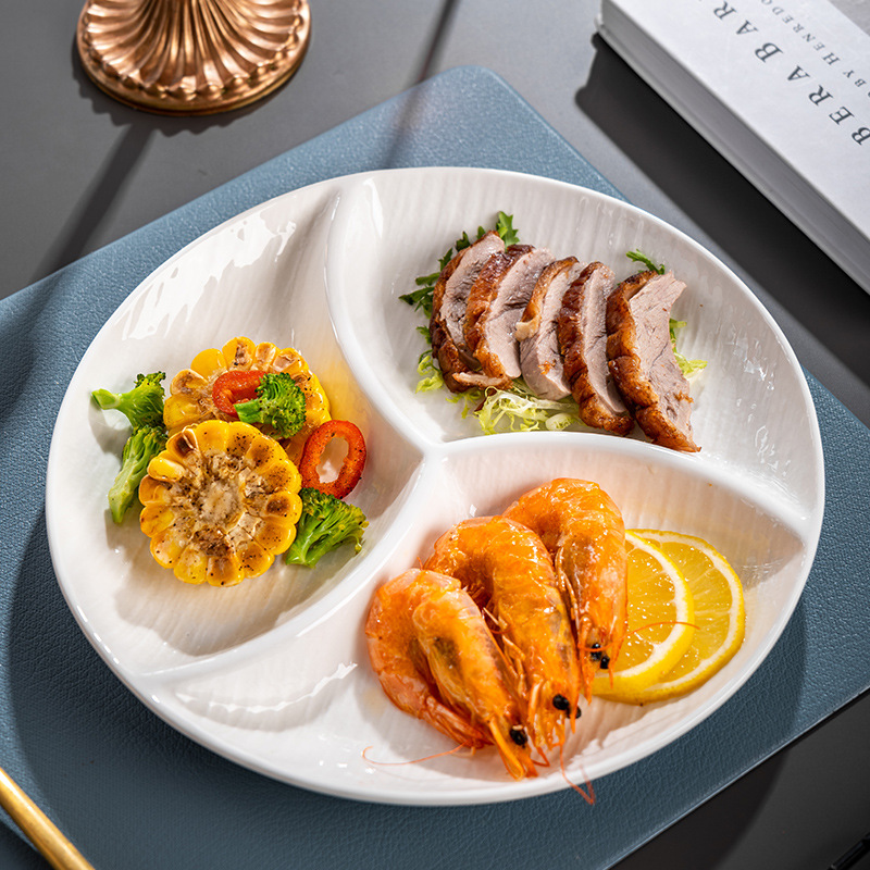 酒店餐厅多格点心盘西餐牛排盘小吃水果摆盘炒菜浅新中式陶瓷餐具