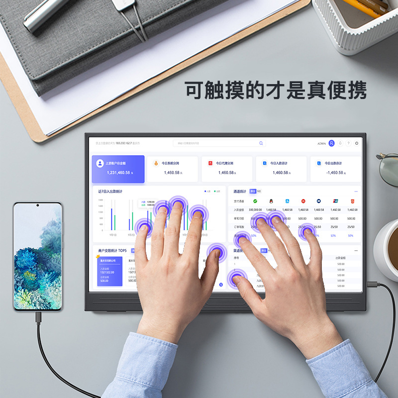 宝扬源头直销14英寸触控显示器副屏Type-C一线直连手机电脑便携屏