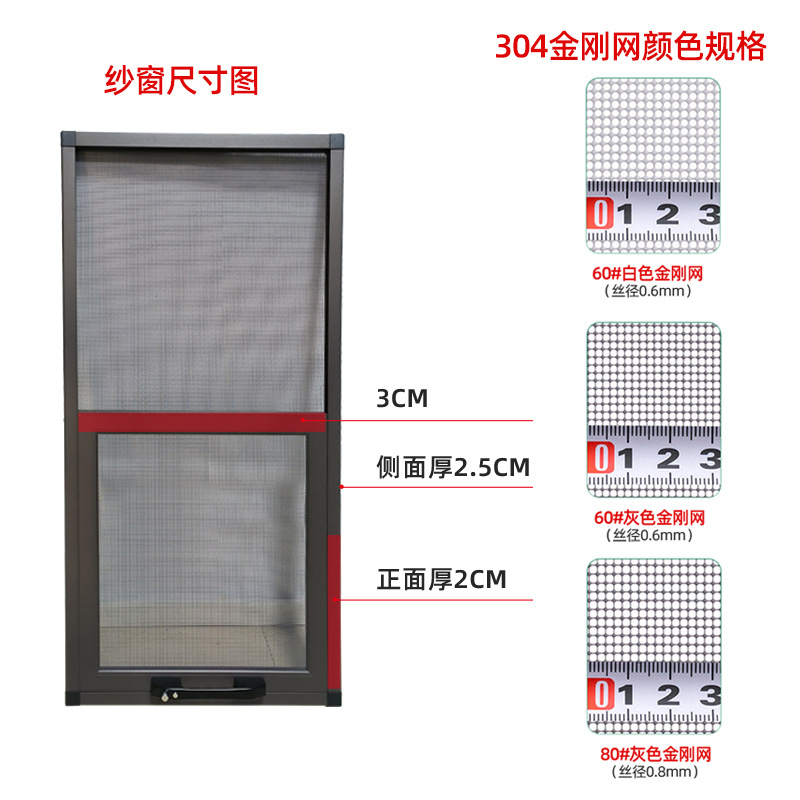 上下推拉金刚网纱窗可拆洗 免钉安装防蚊防猫铝合金纱窗批发定 制