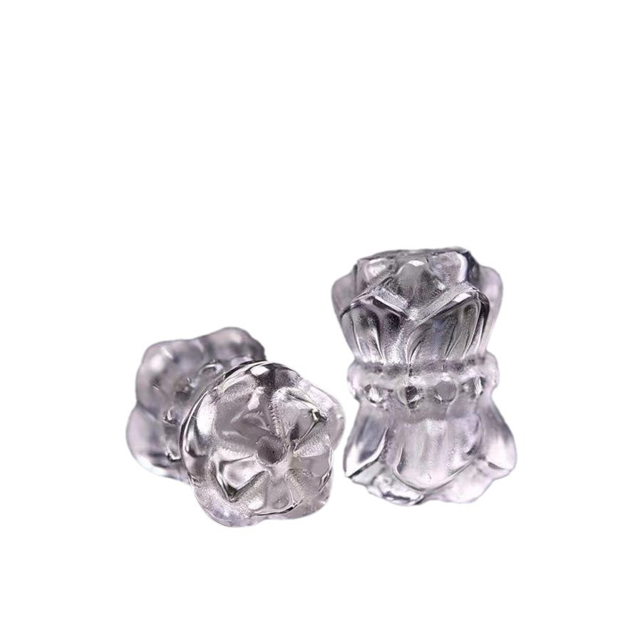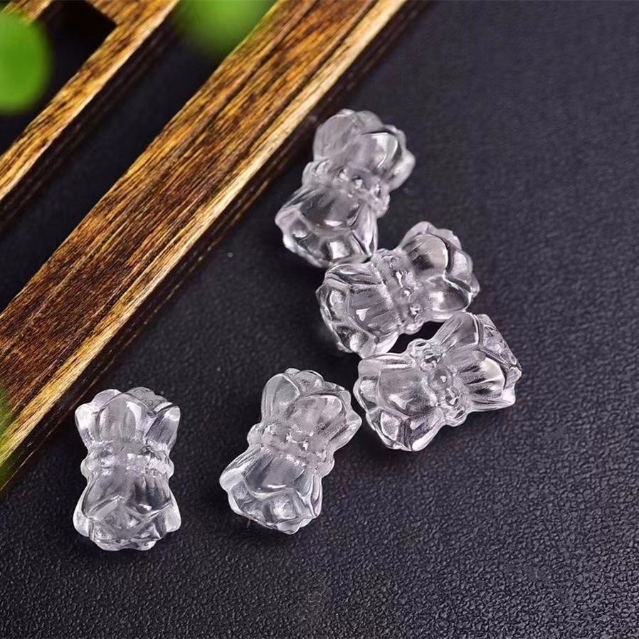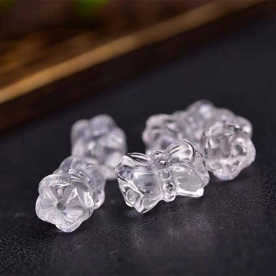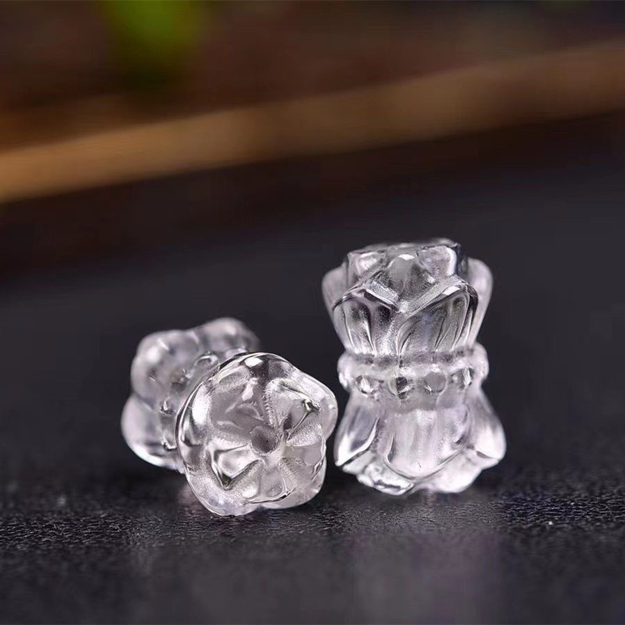 天然白水晶并蒂莲配饰水晶雕刻件手工diy项链手链手机挂件批发