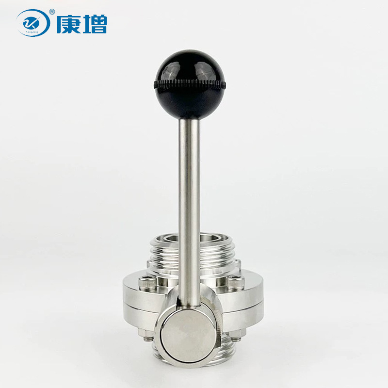 304/316L不锈钢SMS螺纹蝶阀卫生级圆型外螺纹蝶阀手动t型活接蝶阀