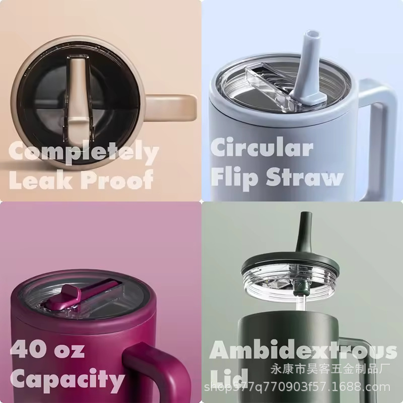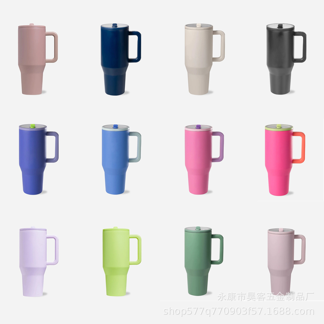 跨境不锈钢40吸管汽车杯泰国越南手柄保温保冷杯可印制定跨境爆款