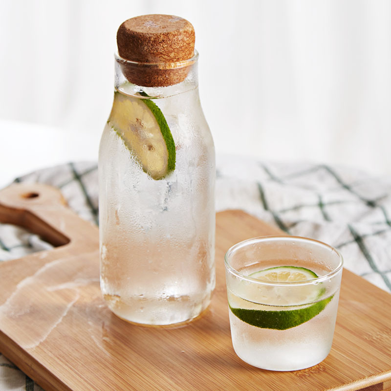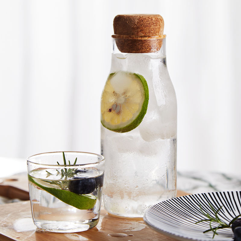 酒店餐饮店果汁奶茶饮料瓶冷水壶高硼玻璃耐高温日式软木塞泡酒瓶