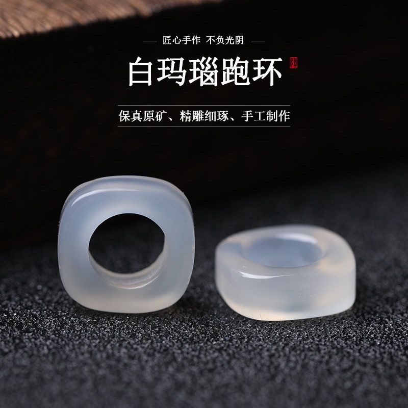 天然白玛瑙方形跑环冰种玉髓荔枝冻方环跑环玉石圆圈diy饰品配件