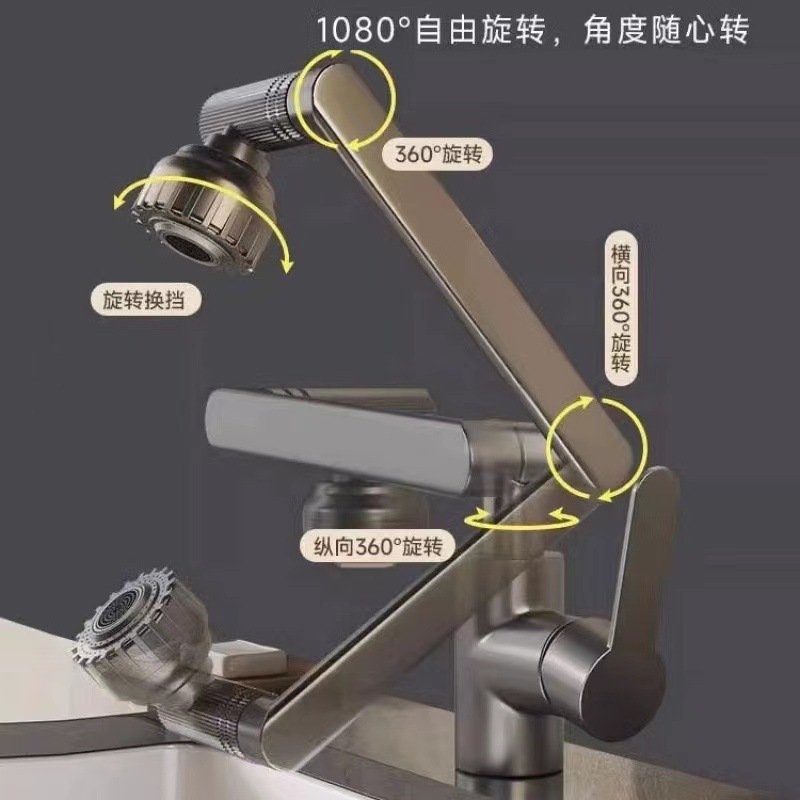 洗脸盆招财猫家用卫生间厨房冷热水面盆洗手台机械臂万向旋转龙头
