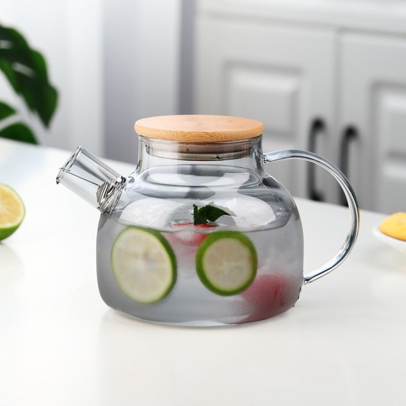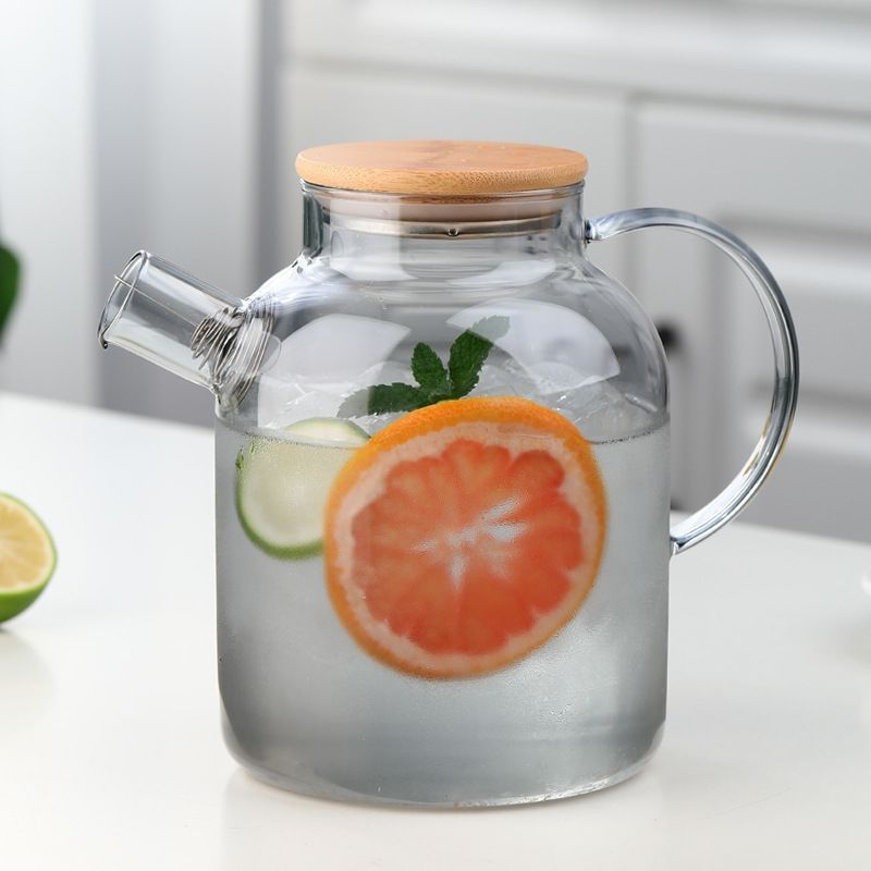 高硼硅玻璃凉水壶大容量高颜值竹盖家用果汁饮料两用凉水壶花茶壶