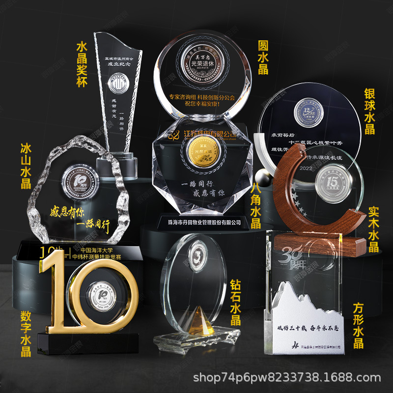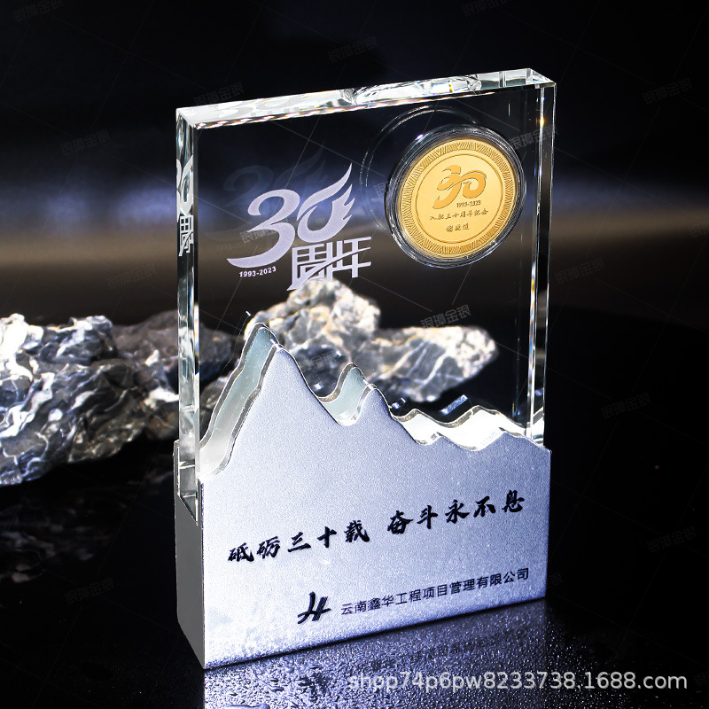数字水晶镶嵌纪念币摆件 纯银999退休纪念品周年庆员工入职礼品定
