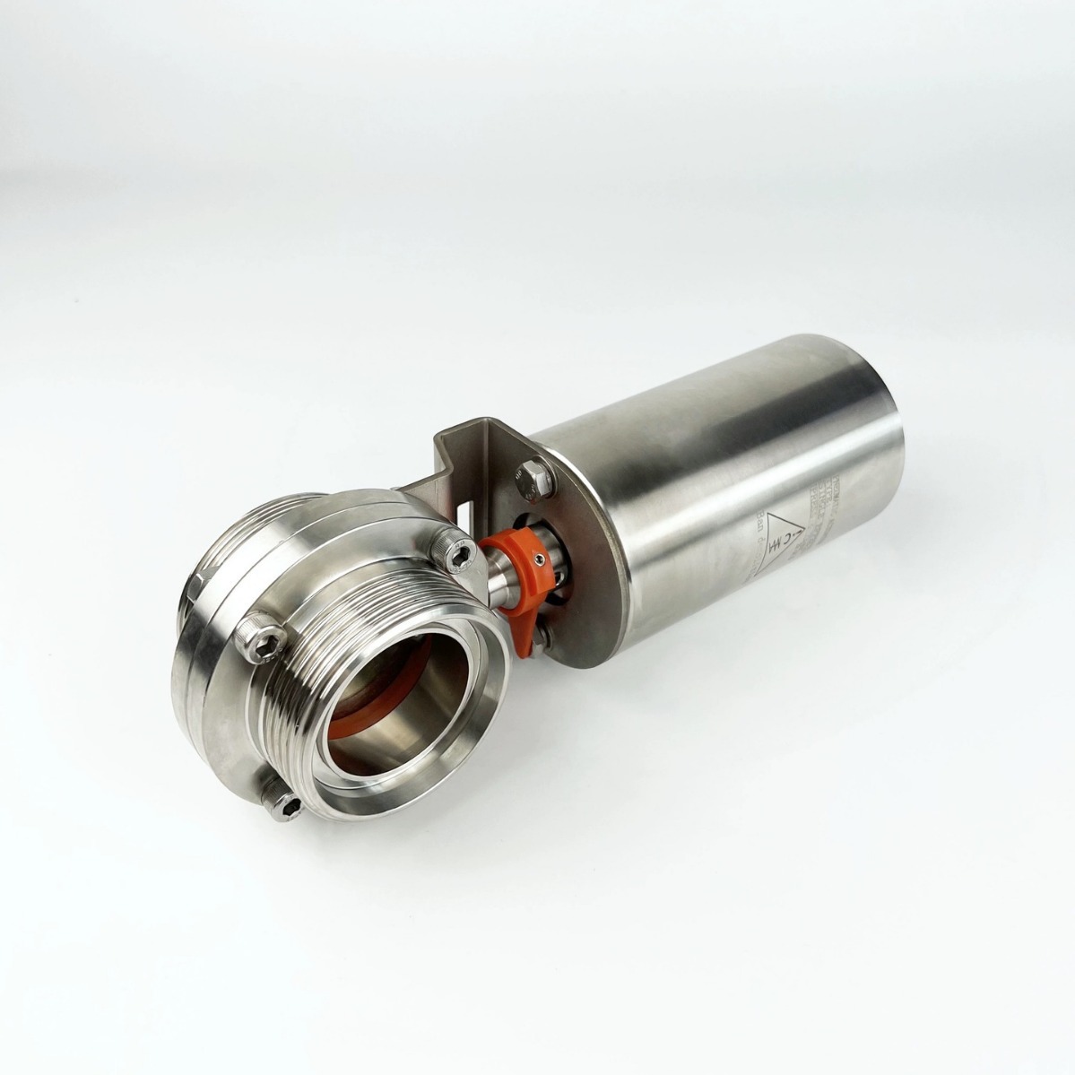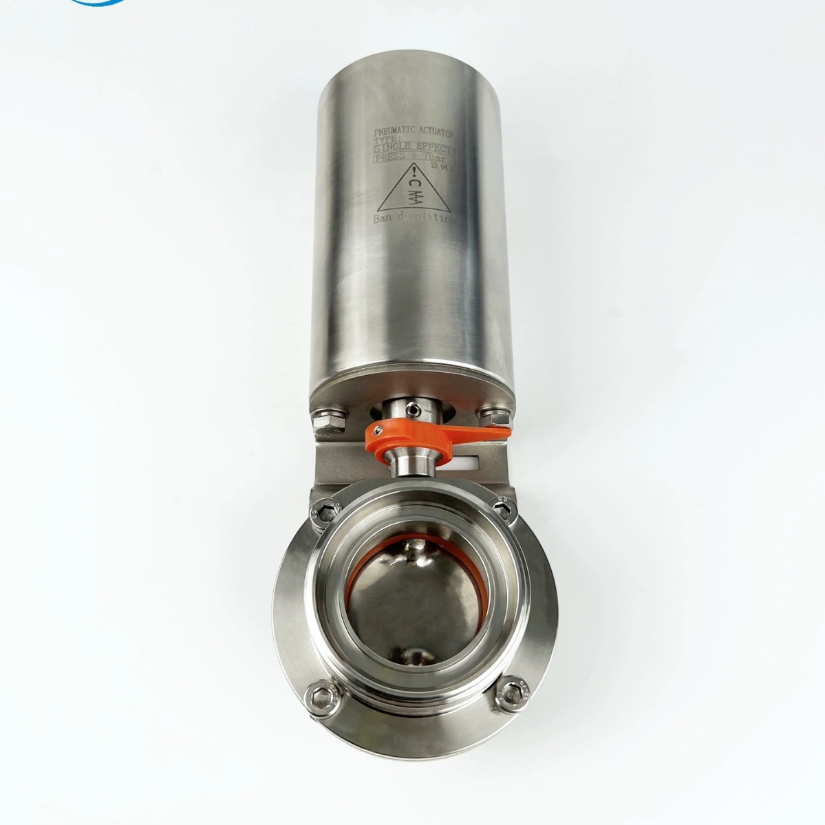 304/316不锈钢卫生级气动螺纹蝶阀快接卡盘蝶阀立式单作用执行器