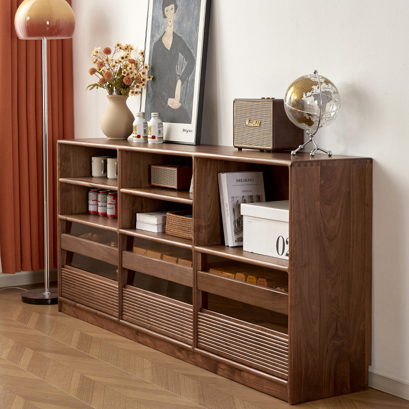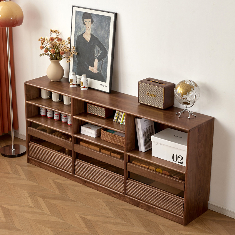 北美黑胡桃木全实木矮书柜樱桃木原木客厅书房储物收纳多功能书柜
