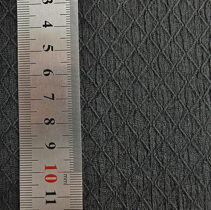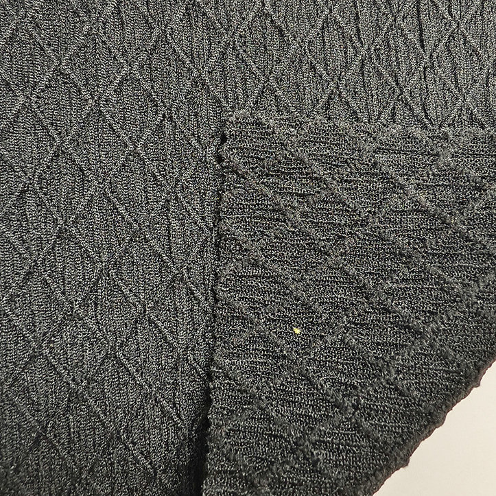 D294菱形格子提花布菱形格夹丝提花空气层针织提花面料休闲服布料