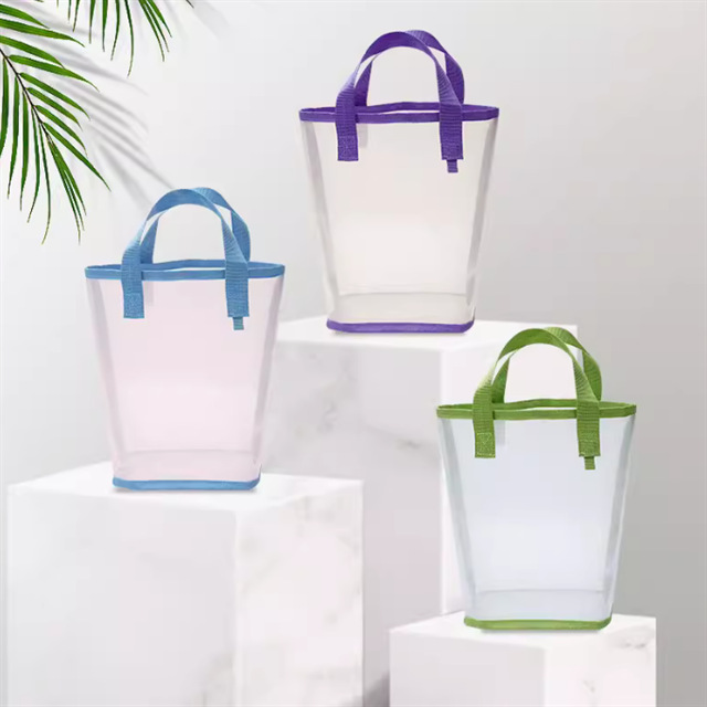 2024厂家专业定制小清新网纱化妆包 透明手提袋 便捷游泳收纳袋