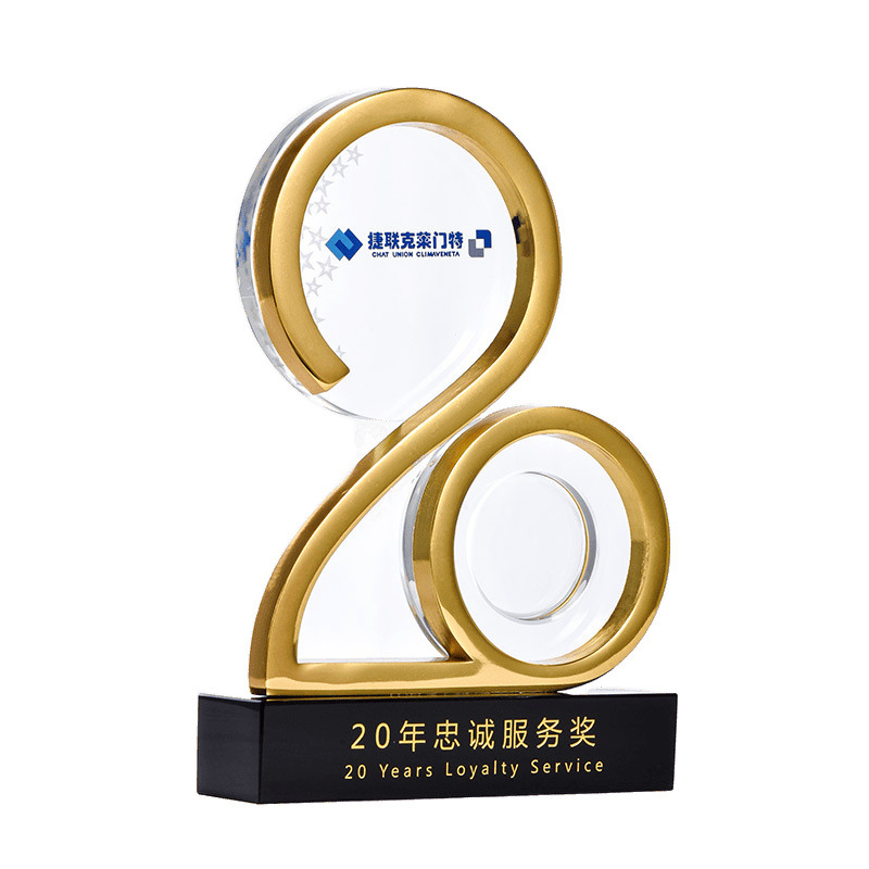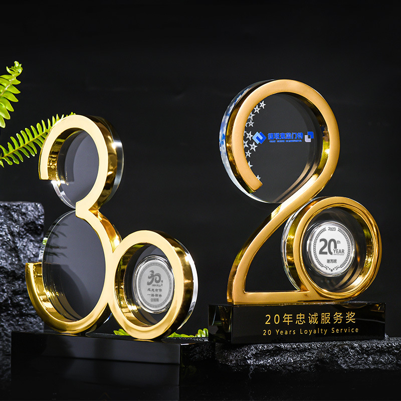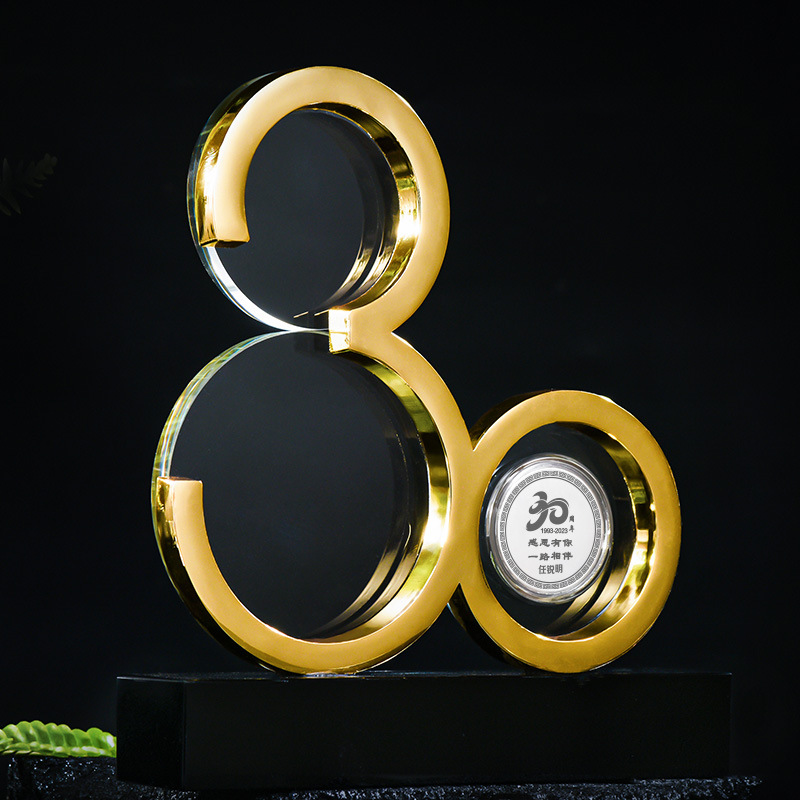 周年庆纪念浮雕高档数字水晶摆件年会创意礼品送同事员工diy奖杯
