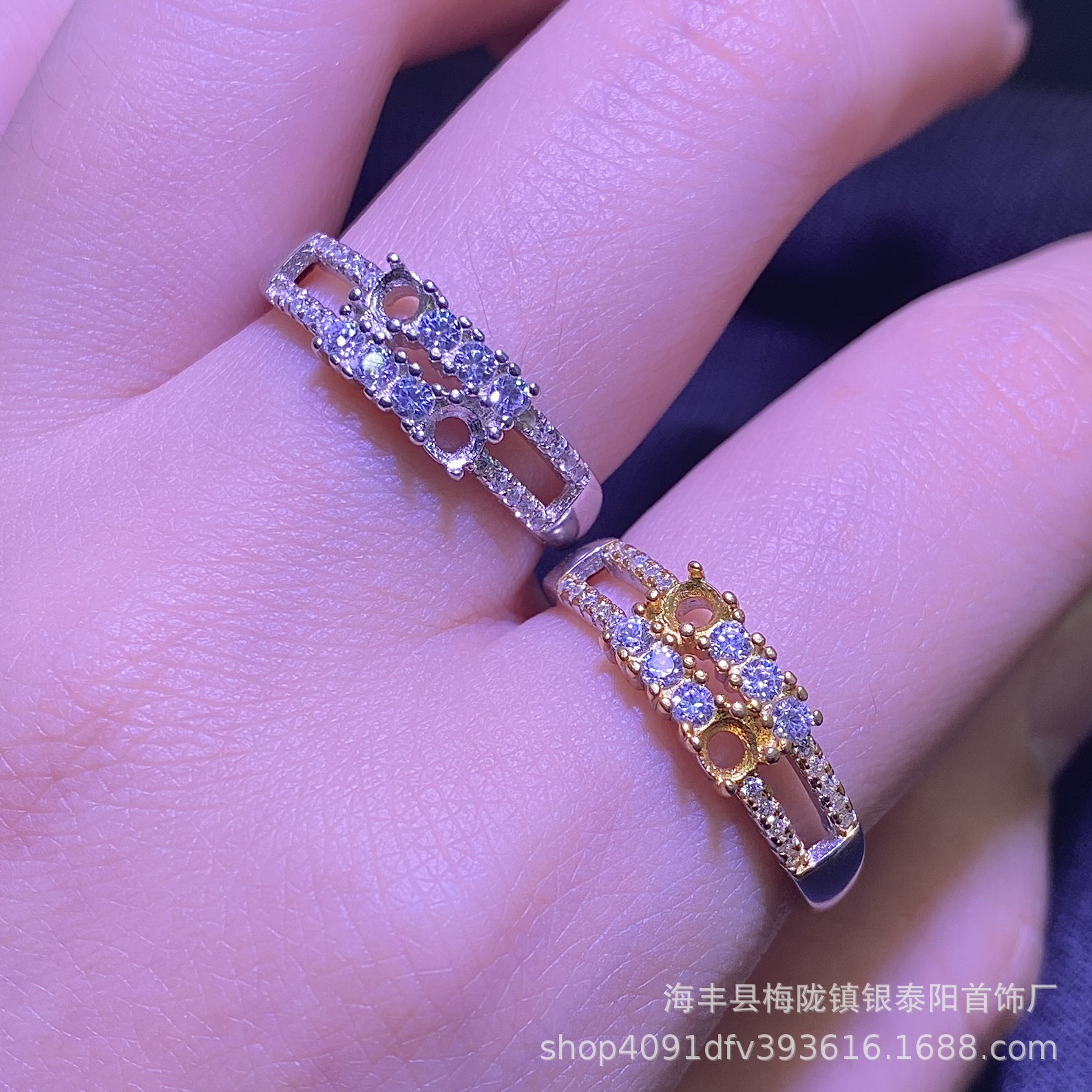 s925纯银简约戒指女银托翡翠危料蛋面高级感空托diy戒托配饰批发