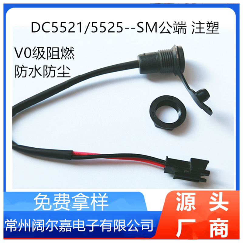 DC5525电池充电口 电动滑板车022母座带线 新款上市 5521注塑防水