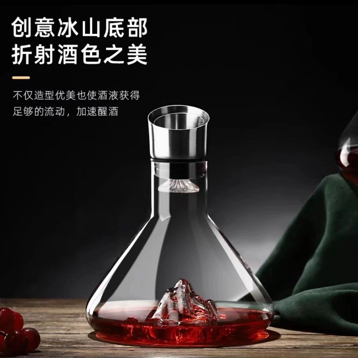 欧式轻奢透明冰山瀑布醒酒器家用过滤式金山快速醒酒葡萄酒分酒器