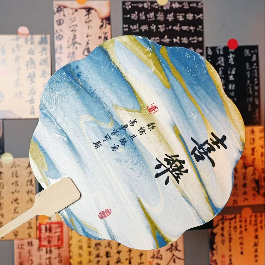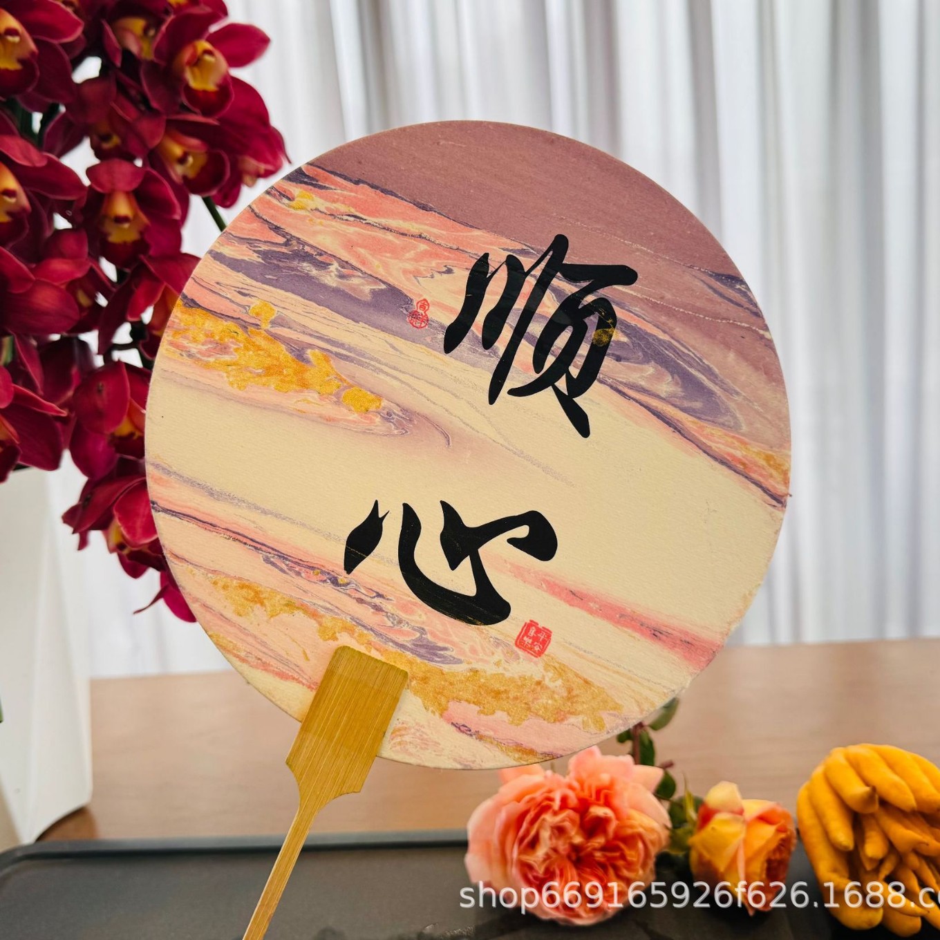 PVC漆扇团扇成品扇已上漆混发10把宣纸团扇带字带图古风团扇漆扇