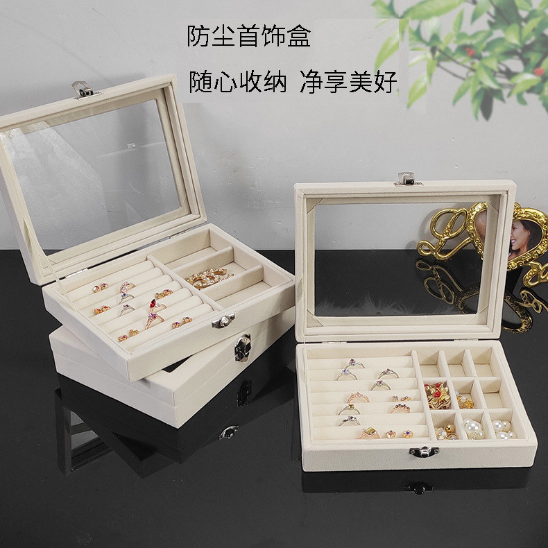 绒布首饰盒带透明盖珠宝箱项链戒指耳环首饰收纳盒展示盒批发