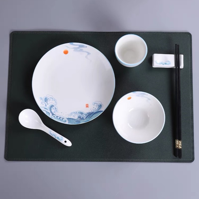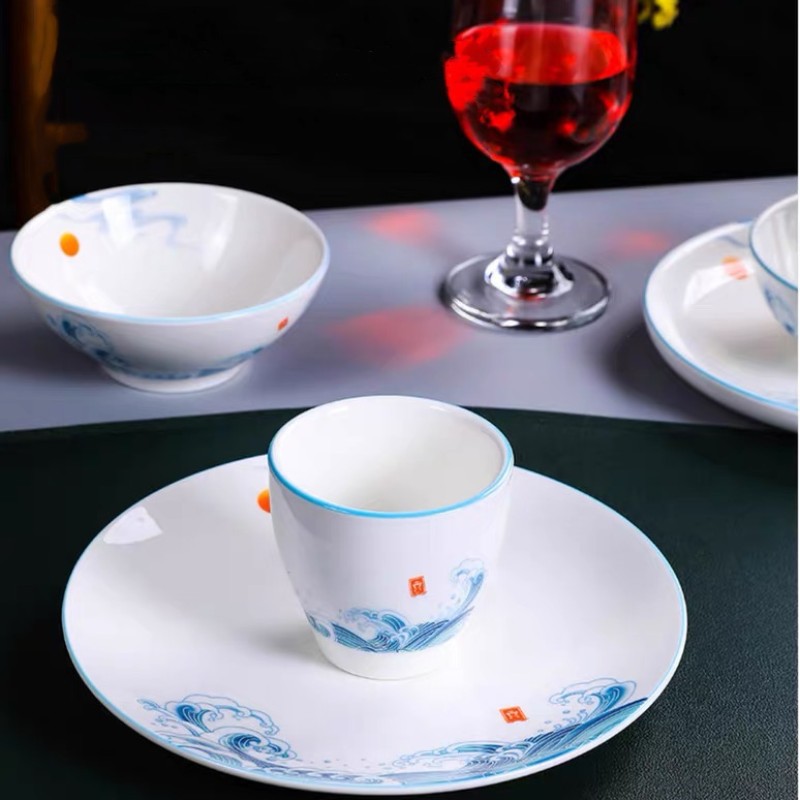 陶瓷酒店餐厅摆台台面饭碗汤碗骨碟茶杯勺子新中式餐具