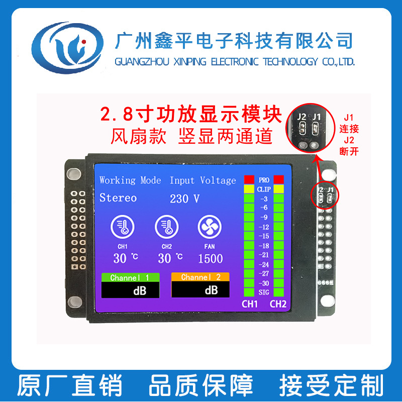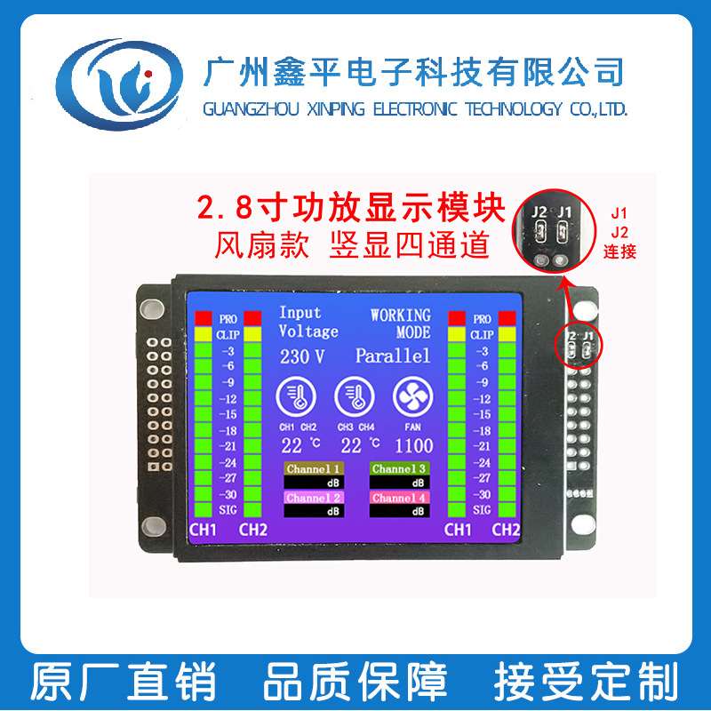 2.8寸TFT功放显示屏模块 风扇款 两通道和四通道兼容IPS全视角