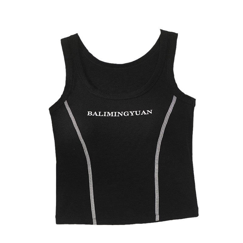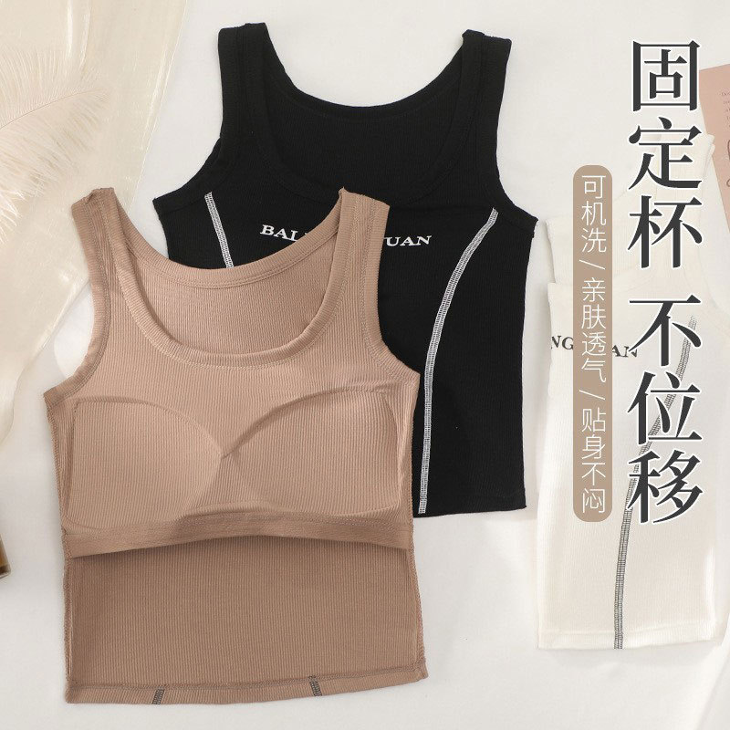 韩版螺纹棉长装固定杯胸垫女运动背心上衣外穿休闲打底宽肩带内衣