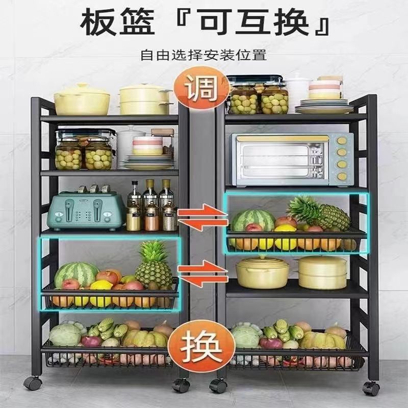落地多层置物架 简约碳钢多功能家用零食杂物收纳厨房靠墙置物架