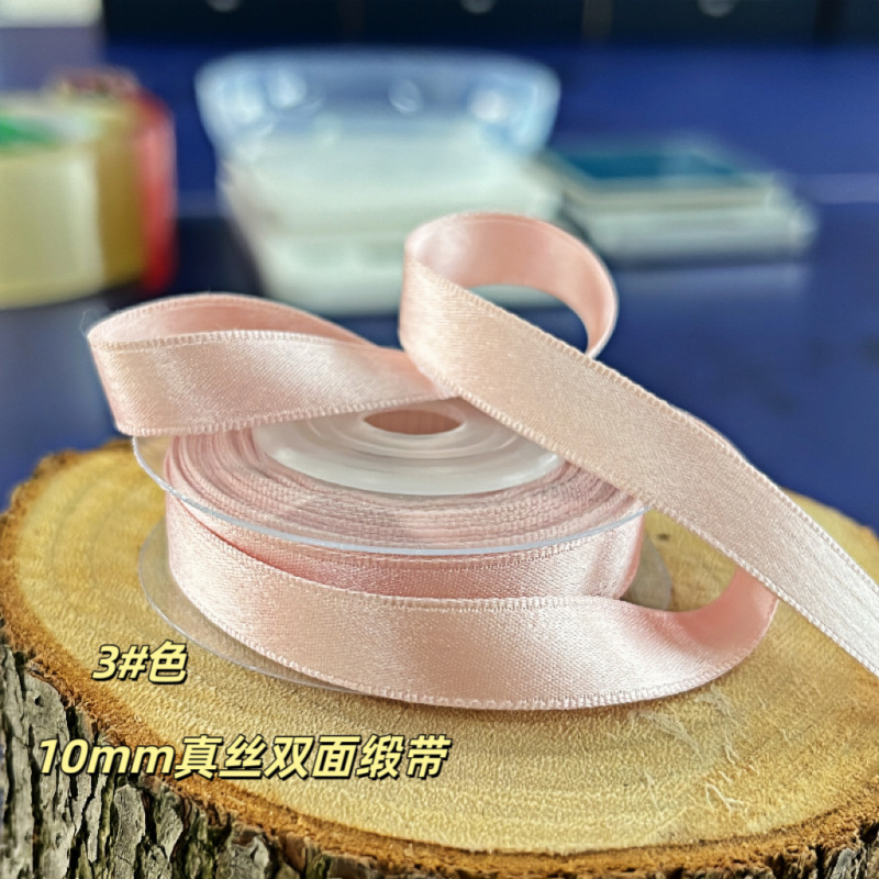 人气9色粉色系1cm真丝双面缎带亲肤柔软diy色丁带1米