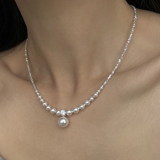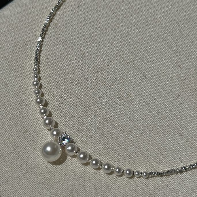 碎银珍珠锁骨链女生轻奢高级感强光镀银项链小众设计精致法式颈链