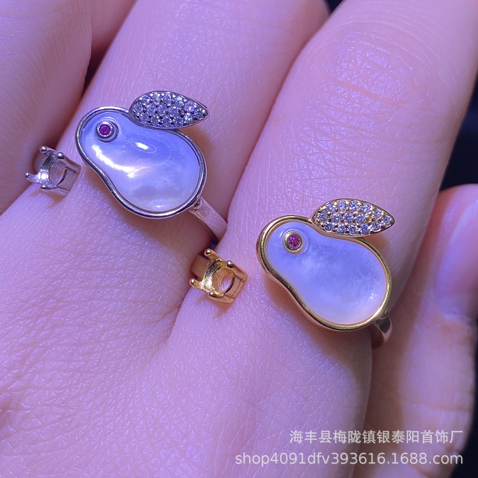 小兔子戒指空托s925银新款潮赫本风网红爆款指环女小众设计高级感