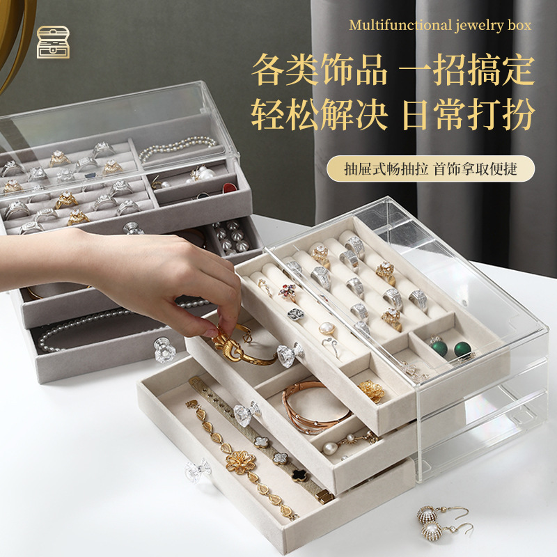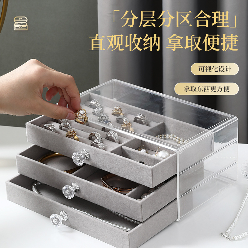 三层礼盒亚克力首饰盒耳环戒指项链饰品防氧化收纳盒规格款式