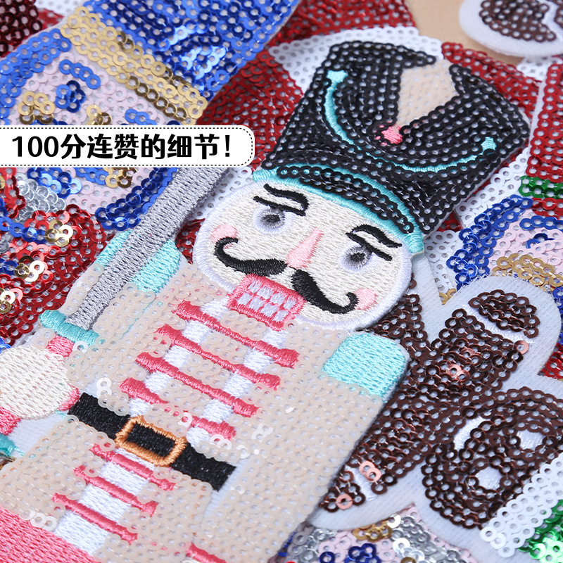亚马逊爆款圣诞雪人服装辅料装饰亮片贴欧式胡桃夹子电脑绣花章
