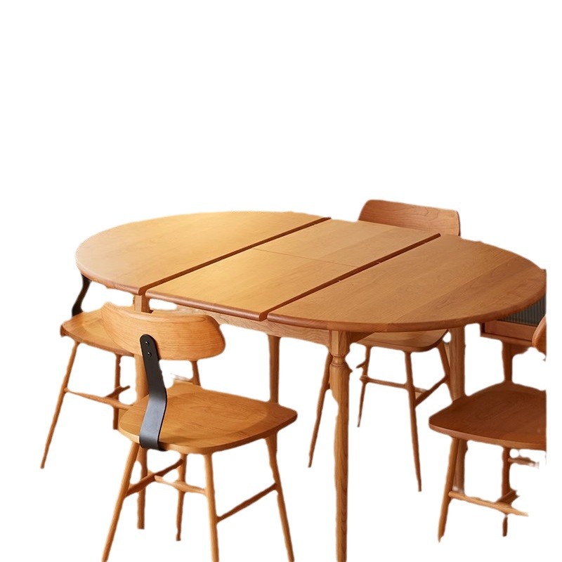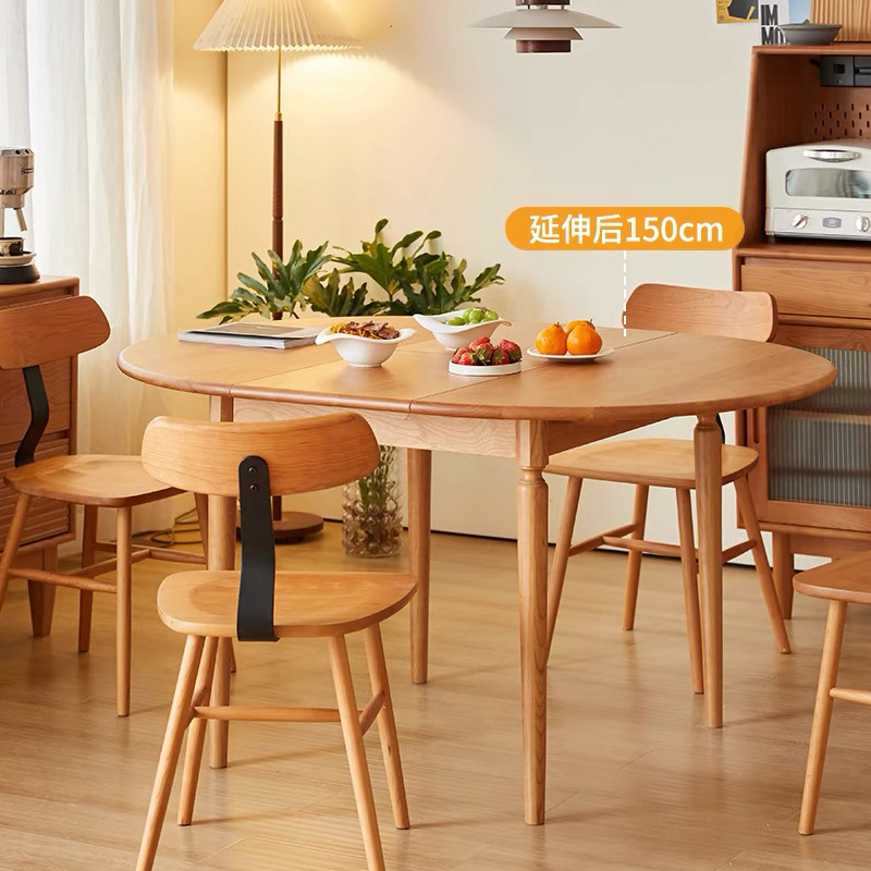 北美樱桃木伸缩餐桌黑胡桃木折叠圆形抽拉饭桌子实木小户型餐厅桌