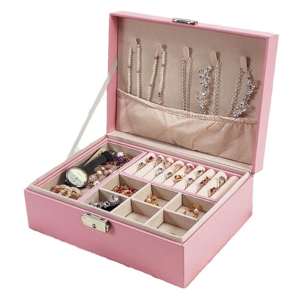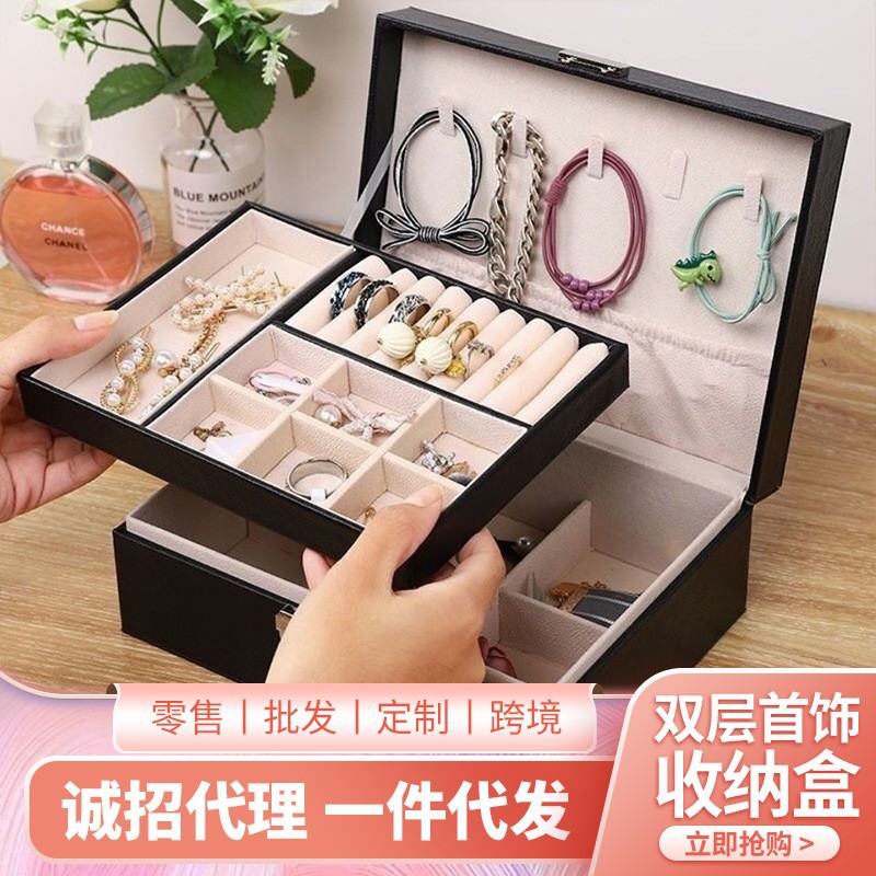 双层首饰收纳盒带锁pu皮革耳环戒指饰品收纳盒子首饰盒定制储物