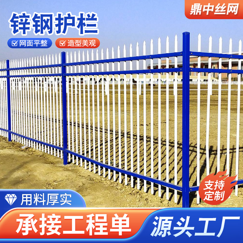 锌钢护栏学校工厂围墙隔离栅栏组装式蓝白农村自建房安全防护围栏