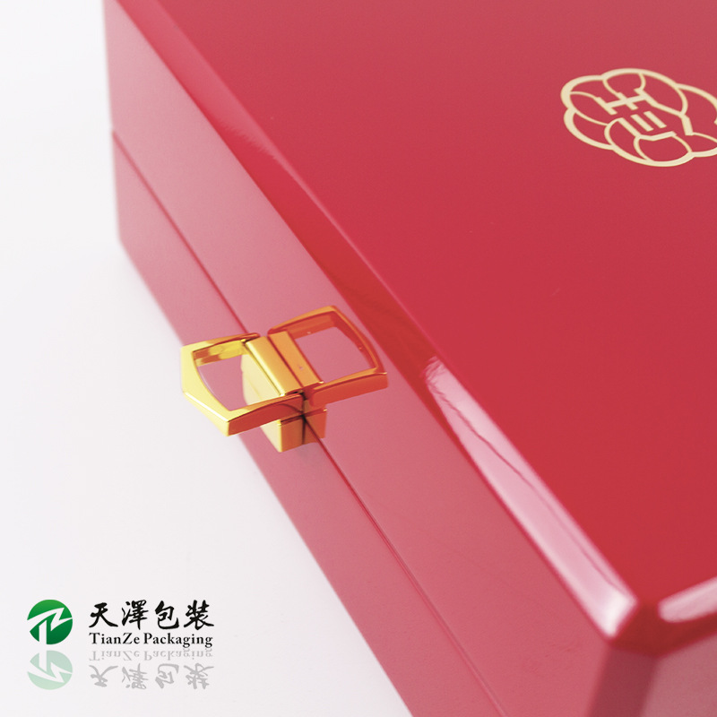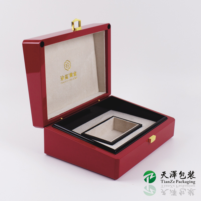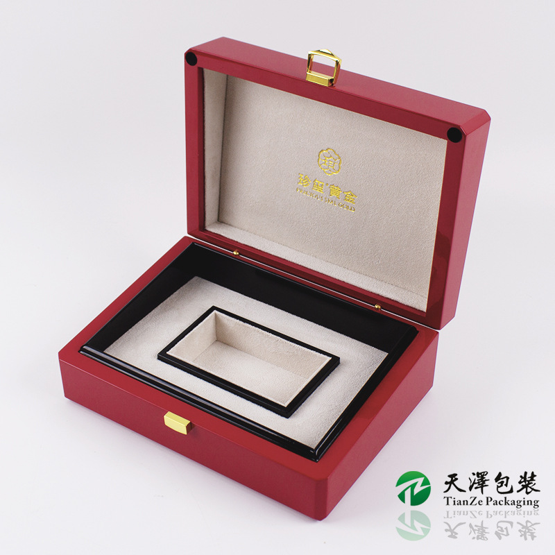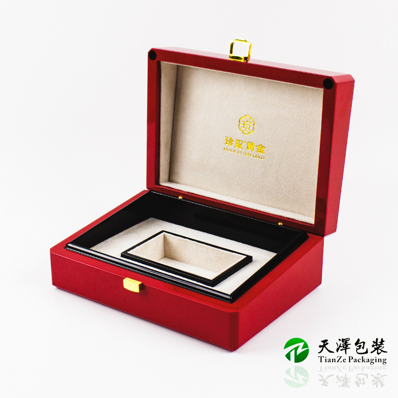 红色钢琴烤漆黄金礼品盒实木黄金首饰盒翻盖式礼品包装盒
