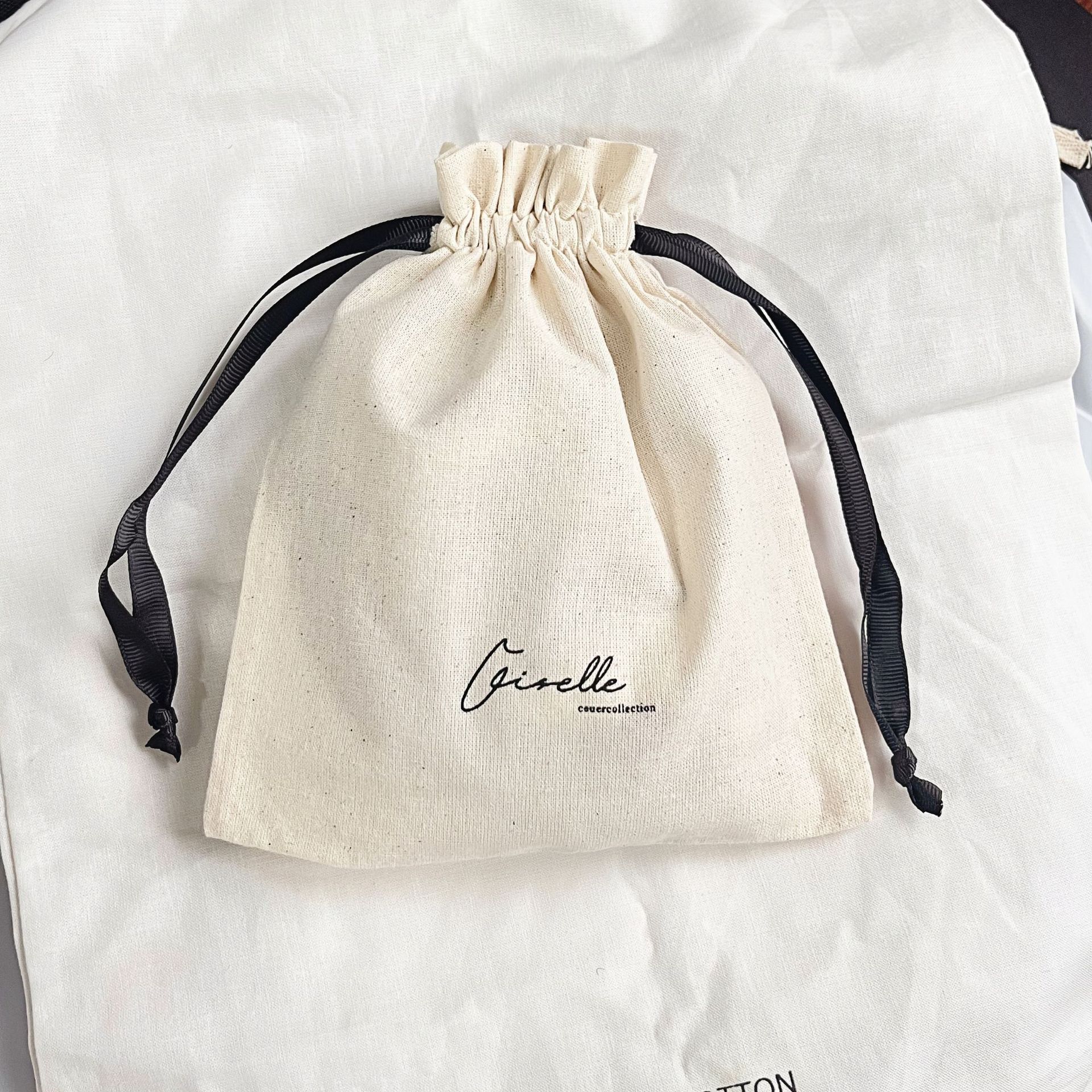 环保米黄色纯棉棉布束口袋按摩精油护肤品木制磨具收纳袋子棉麻袋
