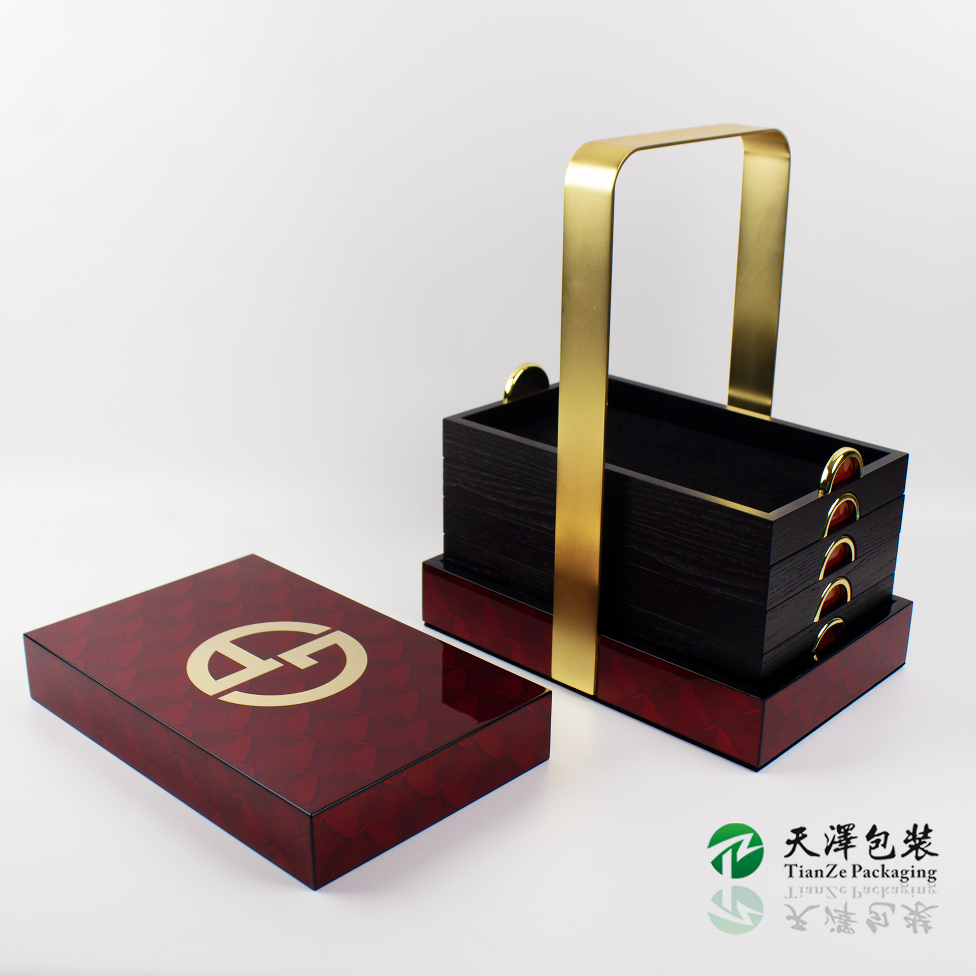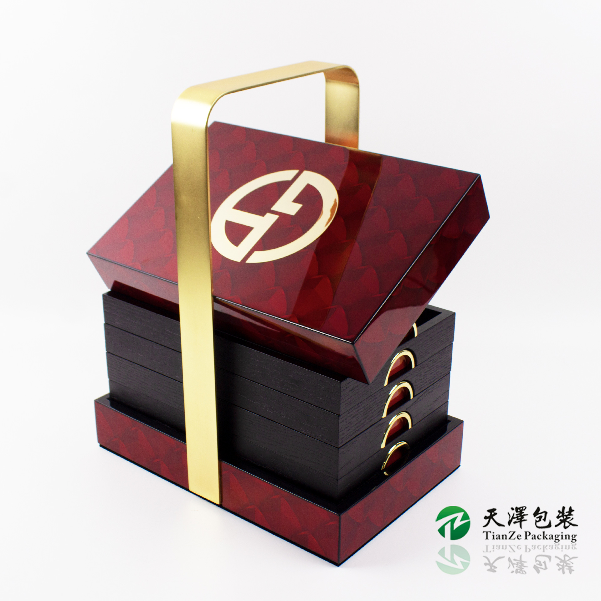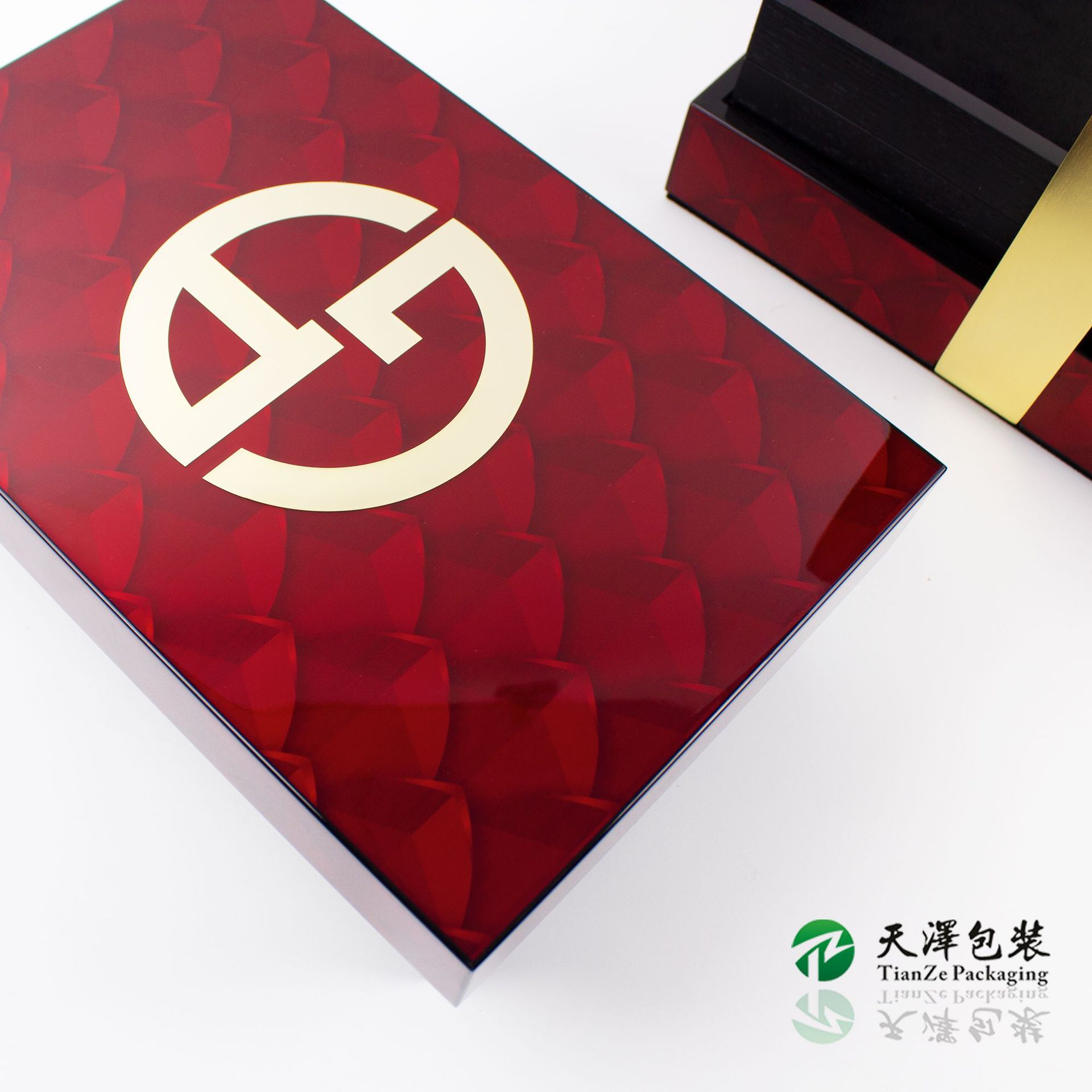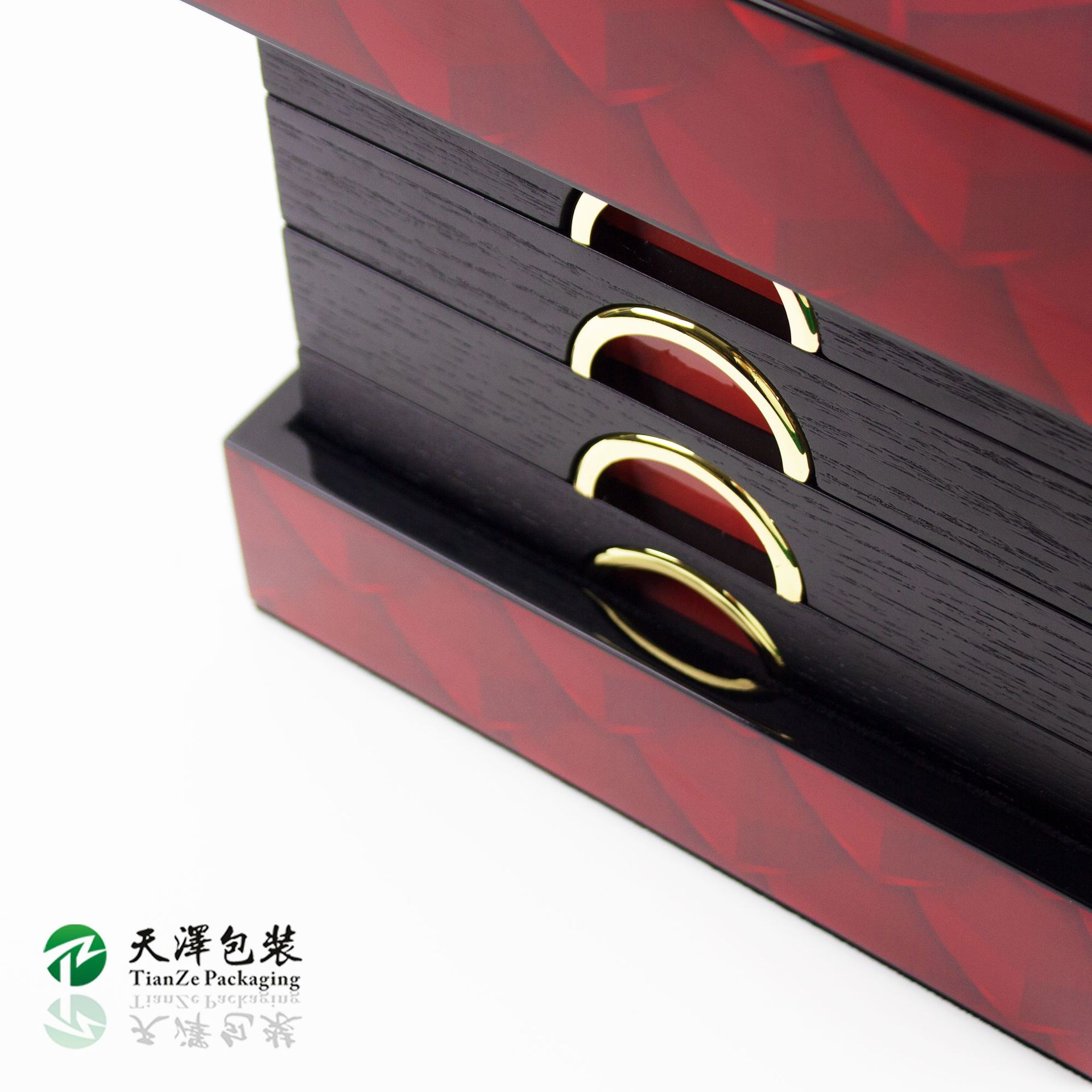 便携式分层礼盒钢琴烤漆礼品木盒实木包装盒个性图案覆盖