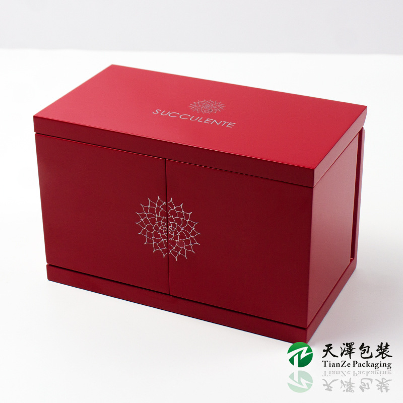 创意双开门红色钢琴漆香水盒法式浪漫香水木盒情侣款香水木盒