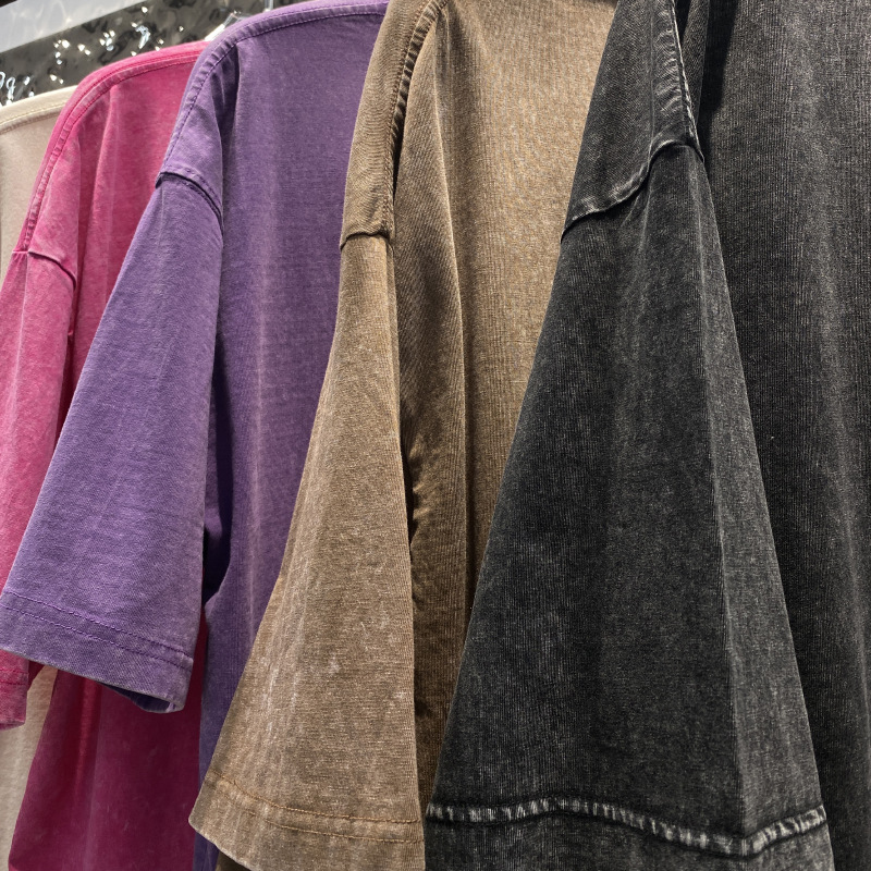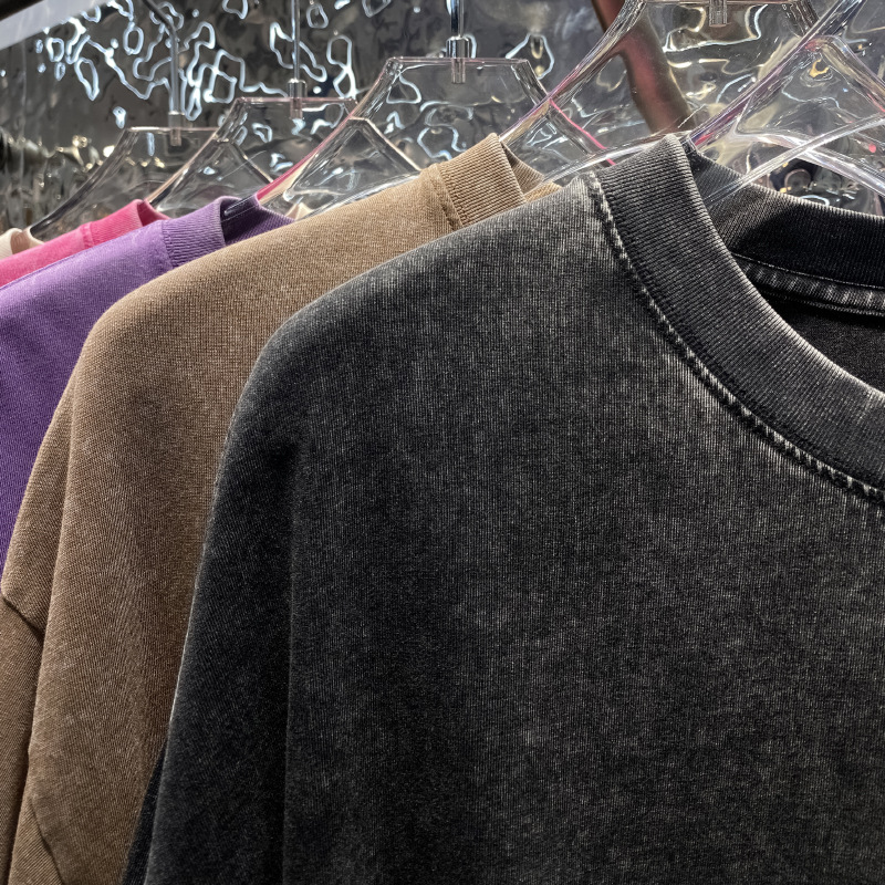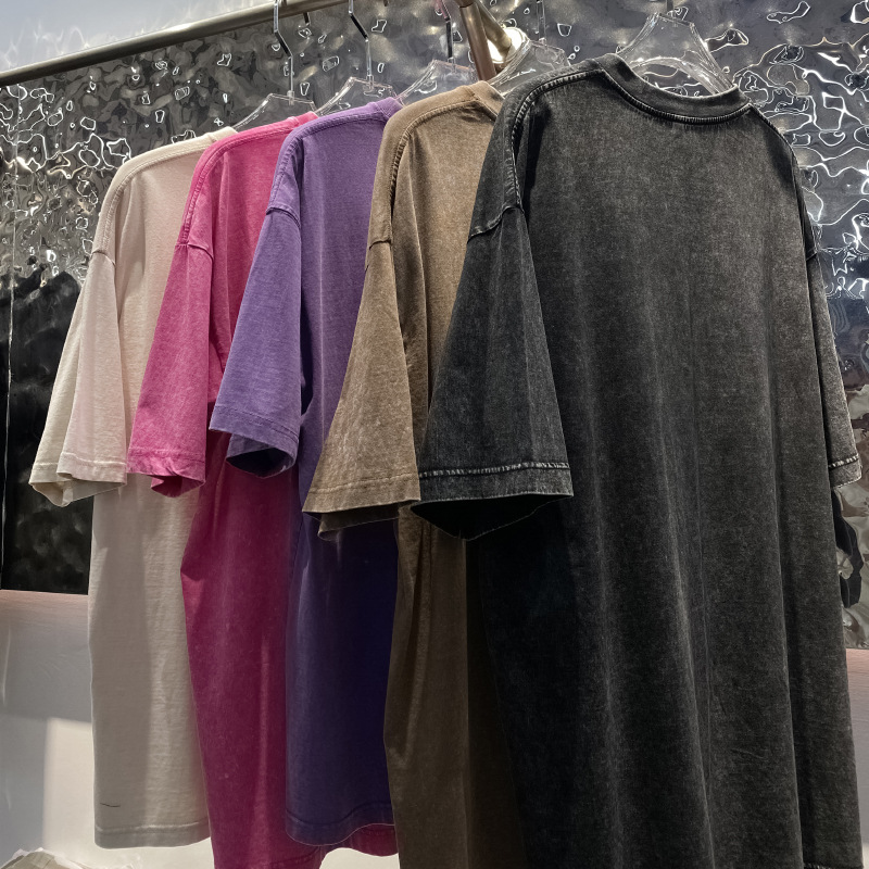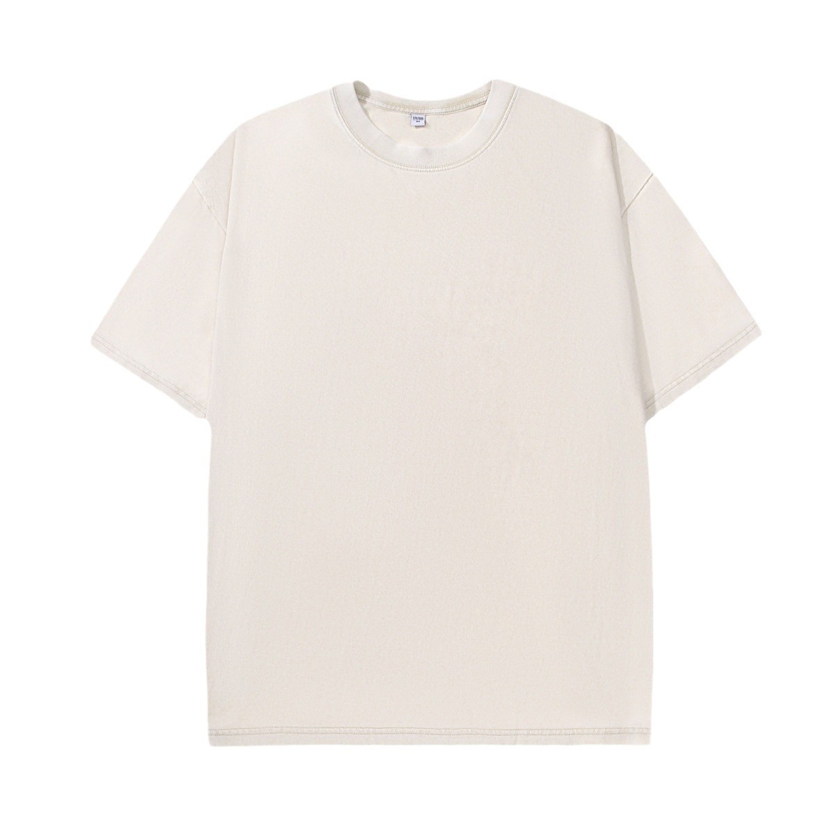 元森旺/230g蜡染美式做旧纯棉圆领短袖T恤情侣宽松半袖上衣宽松款