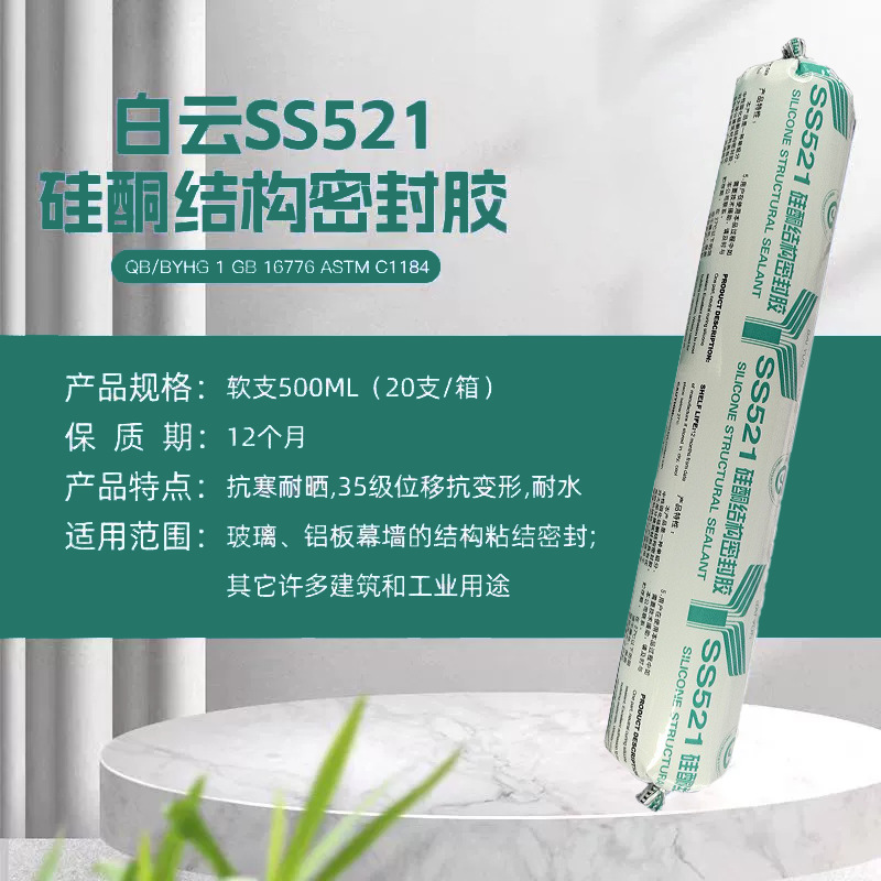 白云SS521中性硅酮结构胶 玻璃幕墙阳光房石材金属工程密封胶