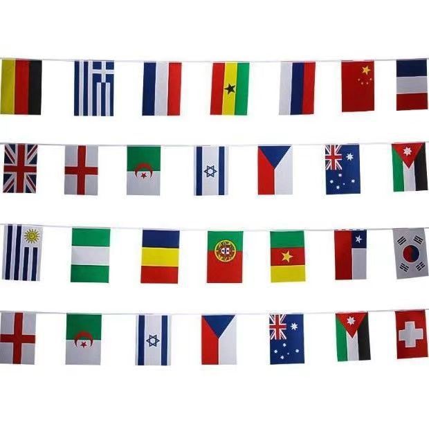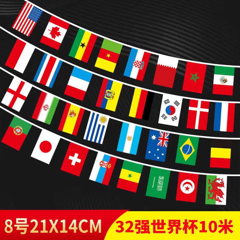 | 尺寸 | 8号中国14_21旗面,30米100个旗 | 尺寸 | 7号(旗面尺寸20_28厘米)12米32个国家国旗串旗 |