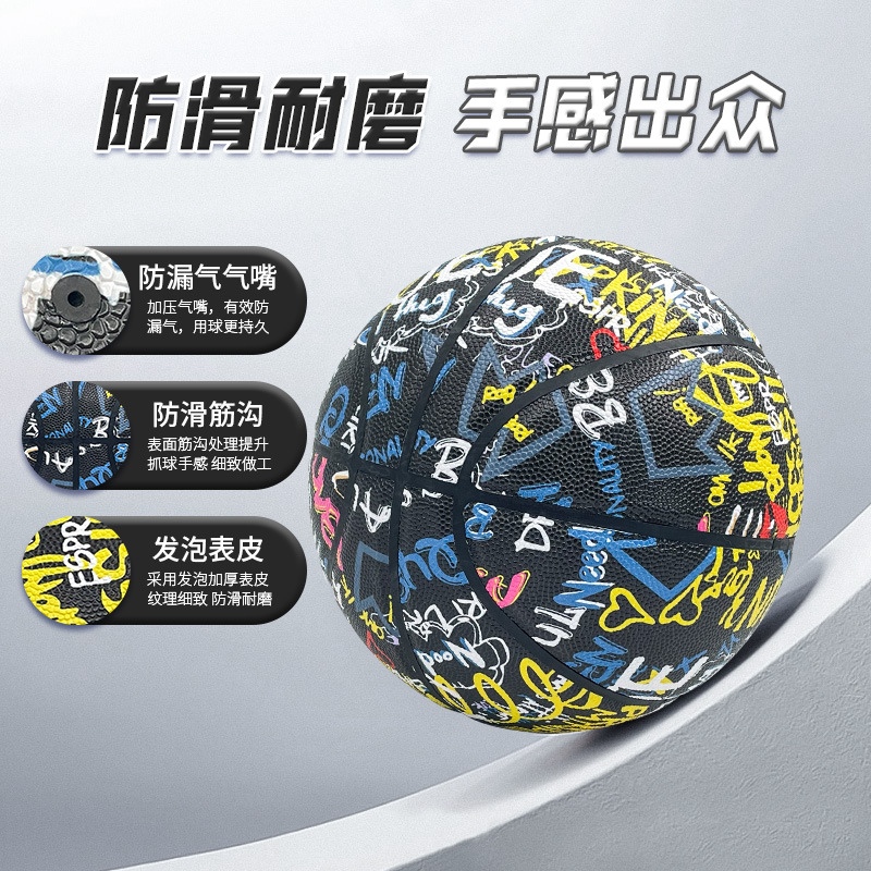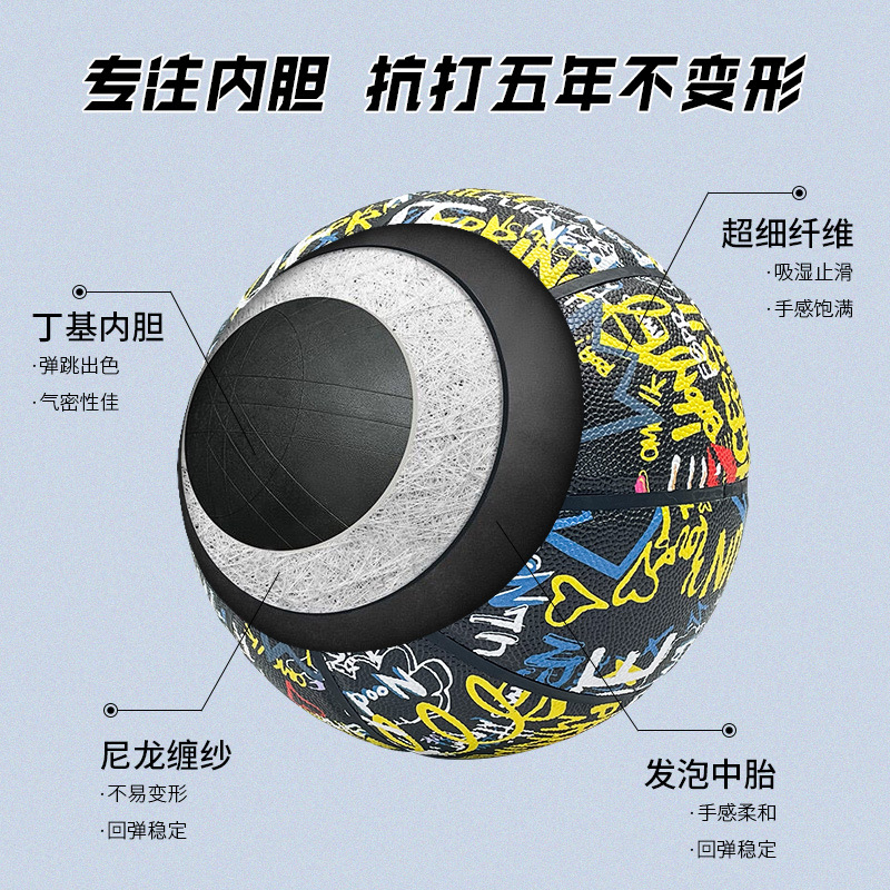 工厂定制5号7号篮球黄黑摩斯密码图案耐打户外野球学生联名款训练