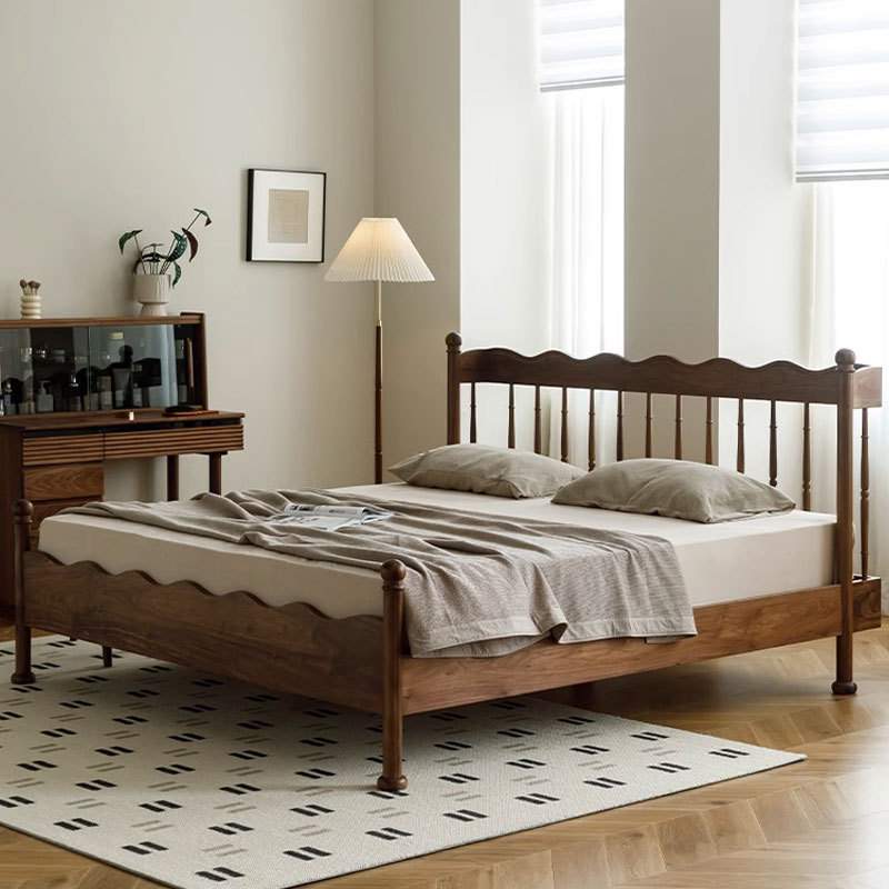 北欧实木黑胡桃木软包床简约复古温莎床日式1.5米主卧1.8米双人床