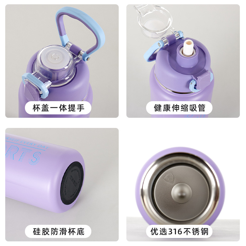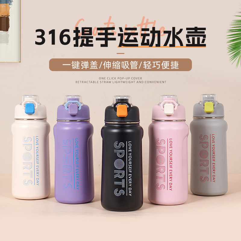 定制316不锈钢保温杯便携吸管弹跳水杯大容量户外手提运动水壶