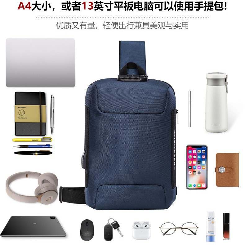 跨境热销多功能防水防盗USB耳机接口大容量旅行斜跨包轻便旅行包